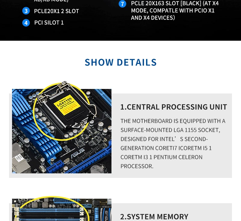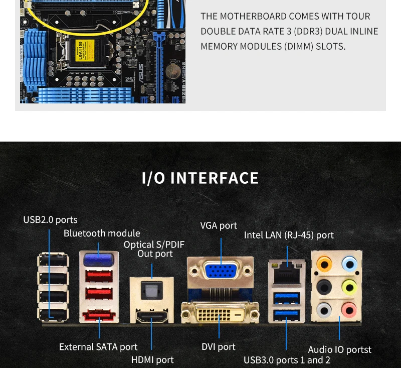 B: Acepta la frecuencia de 1066, 1333, 1600, 1866, 2133, 2200 MHz y el procesador Intel de tercera generación.