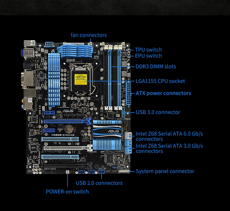 Comprar Placas base LGA 1155 ASUS P8Z68-V/GEN3, LGA 1155 DDR3 Intel Z68 PCI-E 3,0 SATA III USB3.0 para Core i3-2130 i5-2500K