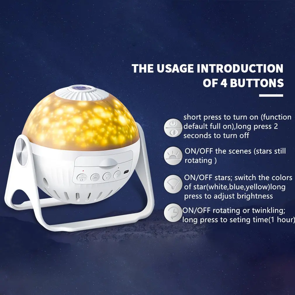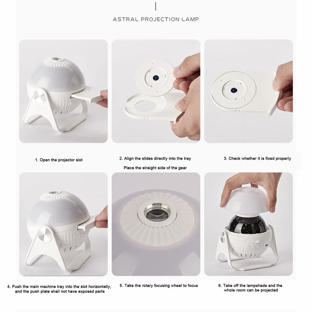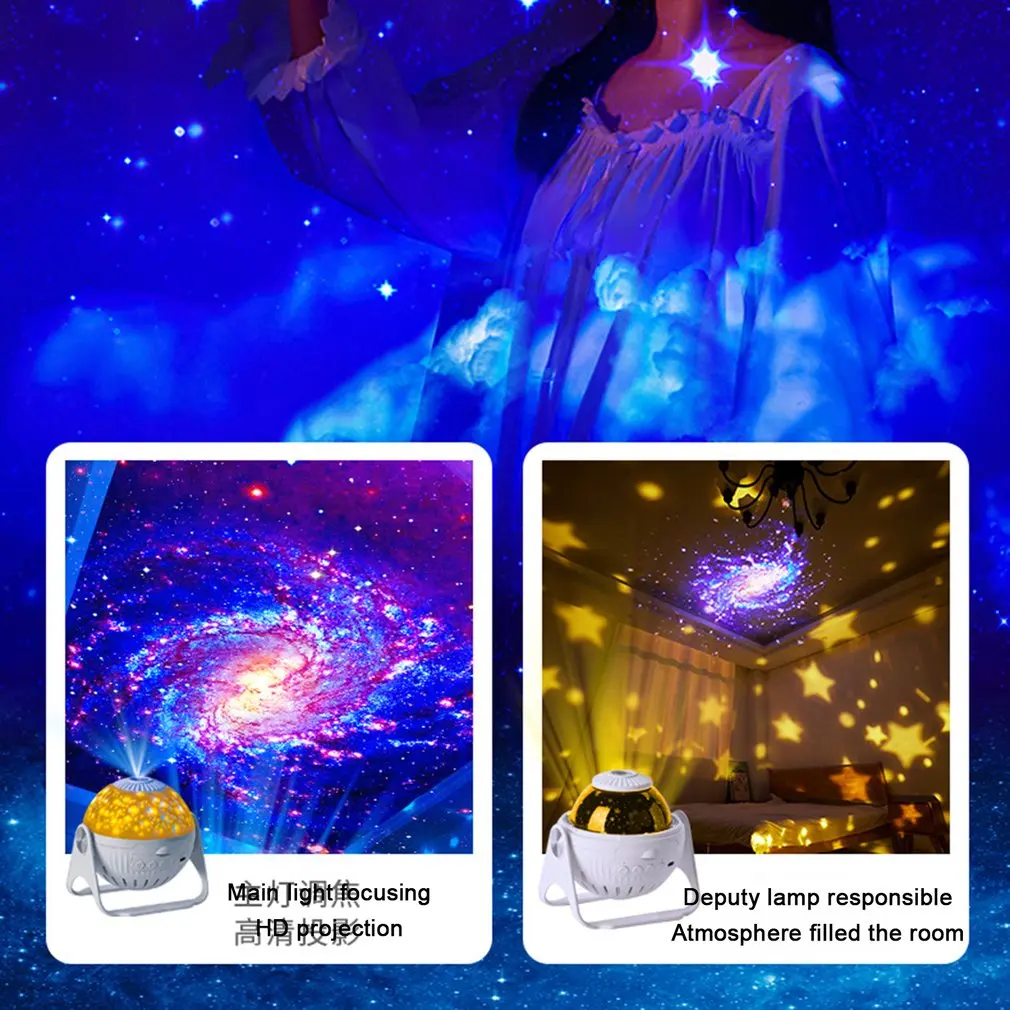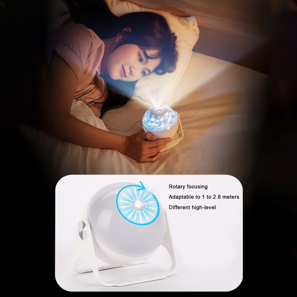 La lámpara de noche de cielo estrellado diseñada por la cápsula espacial le permite sentir el hermoso cielo estrellado y crear un ambiente cómodo y tranquilo. Los patrones móviles se reflejan en el techo, lo que le permite sentir la profundidad del cielo estrellado.