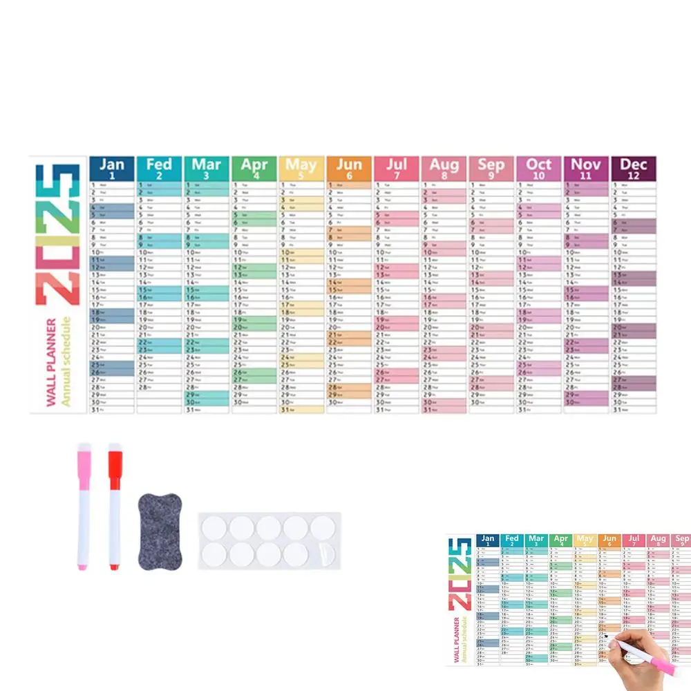 2025 Annual Wall Calendar Planner Wet Erase Laminated 12 month Schedule With Pen Eraser Board Vertical Dry Erase Yearly Planner