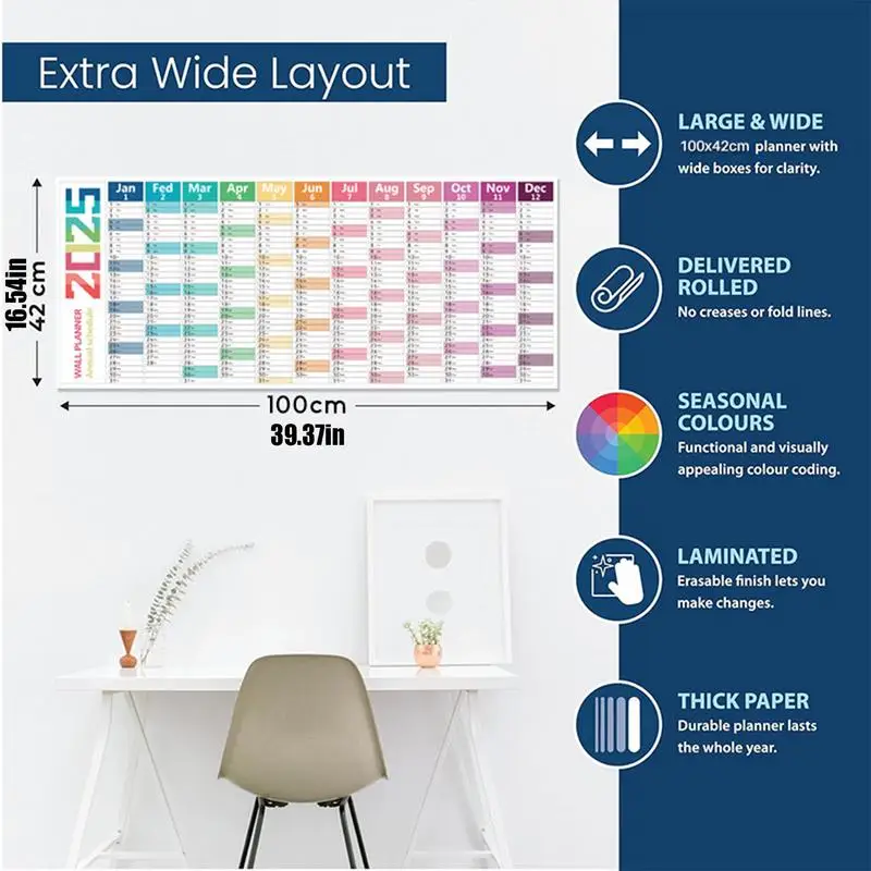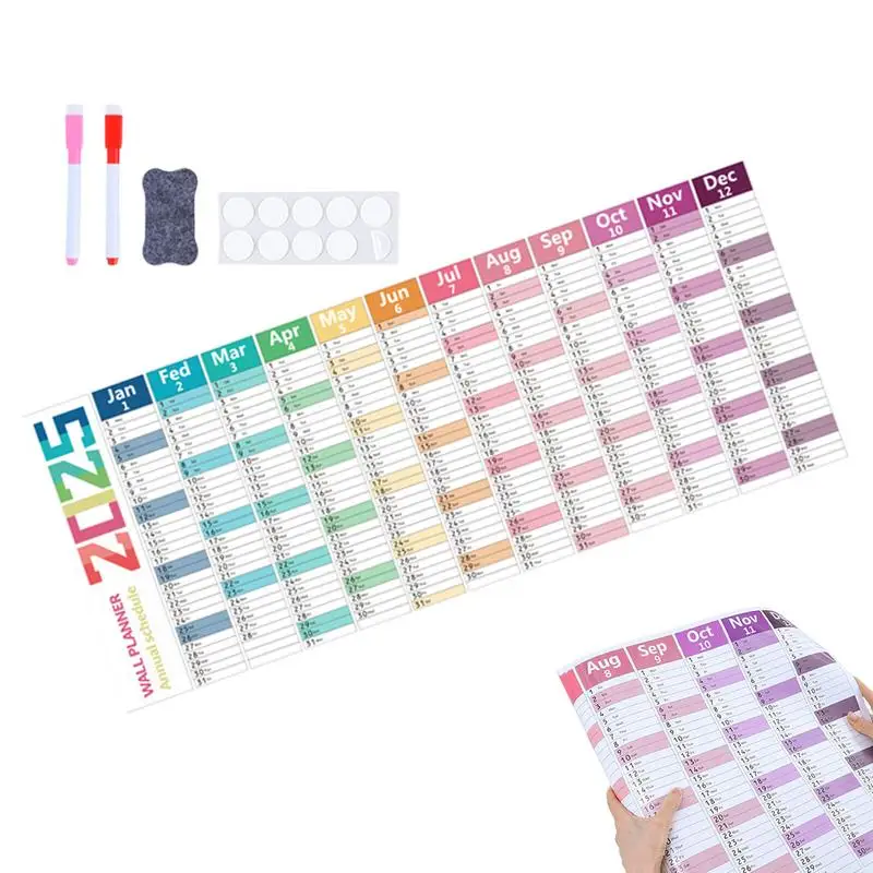 2025 Annual Wall Calendar Planner Wet Erase Laminated 12 month Schedule With Pen Eraser Board Vertical Dry Erase Yearly Planner