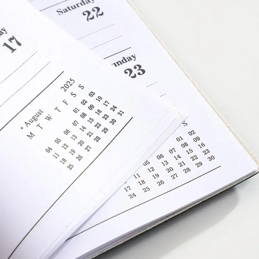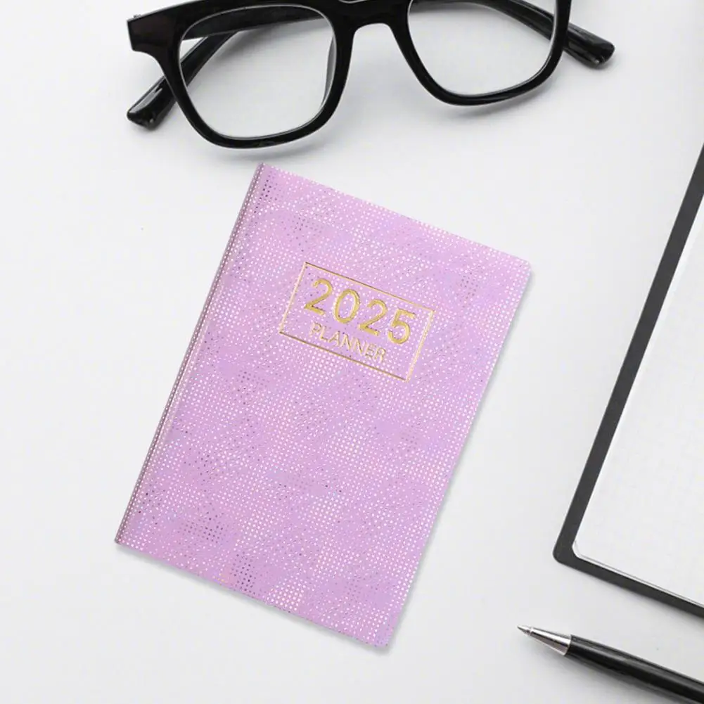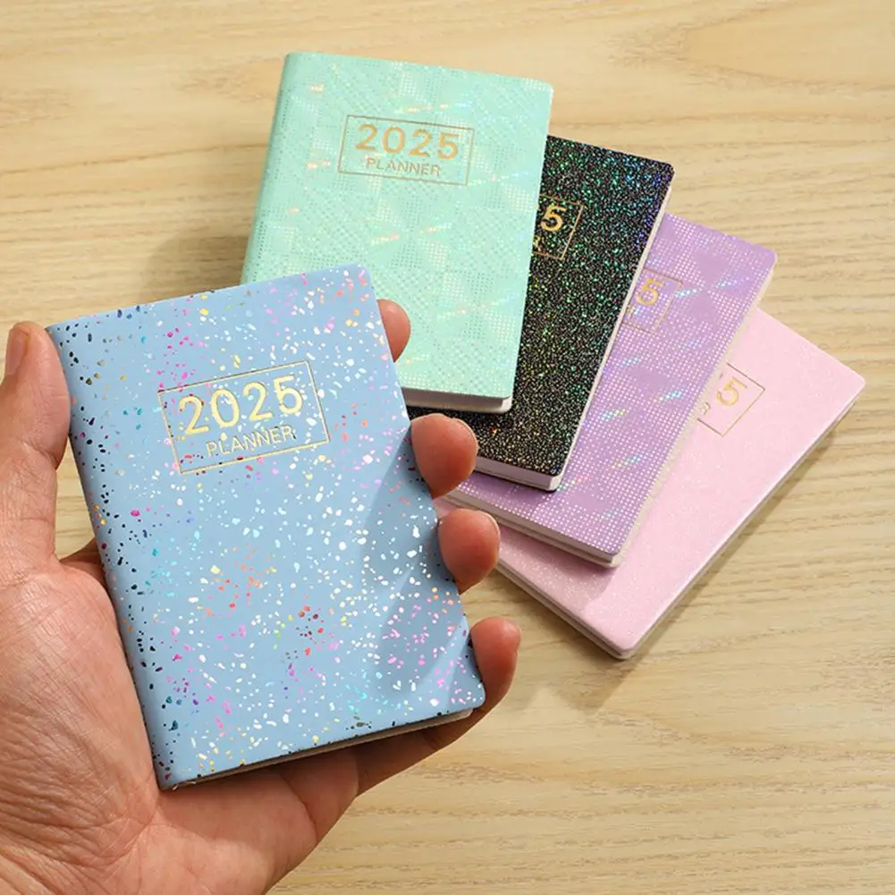 Planificador de estudio con papel grueso, cuaderno de piel sintética de tamaño bolsillo 2025 con papel resistente a la tinta, escritura suave para vendedores