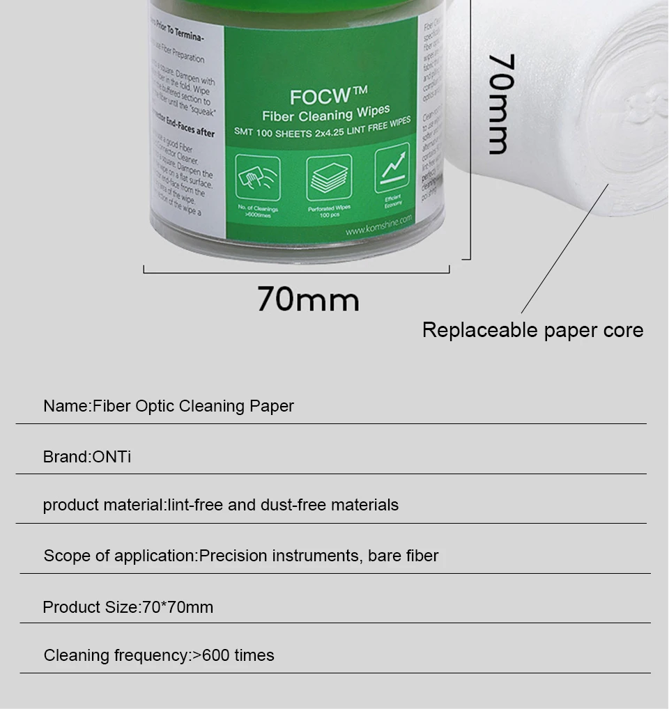 Plataforma de toallitas de limpieza de fibra ONTi, papel sin polvo, fibra óptica, toallitas de baja pelusa, papel limpio de fibra óptica, herramientas FTTH