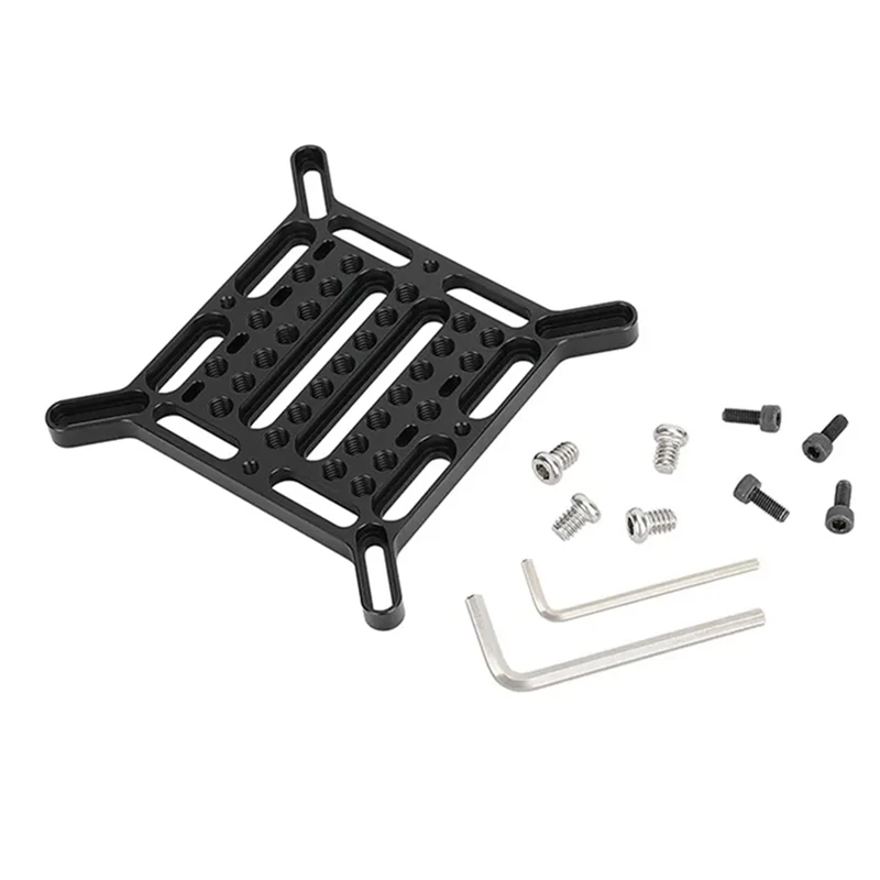Various 1/4inch-20 threads and anti-twist threads with locating pin holes allow you to attach more accessories. There are long slots for sliding adjustment. Colour:Black Material:Aluminum alloy