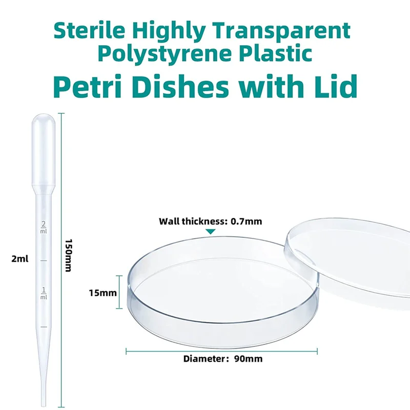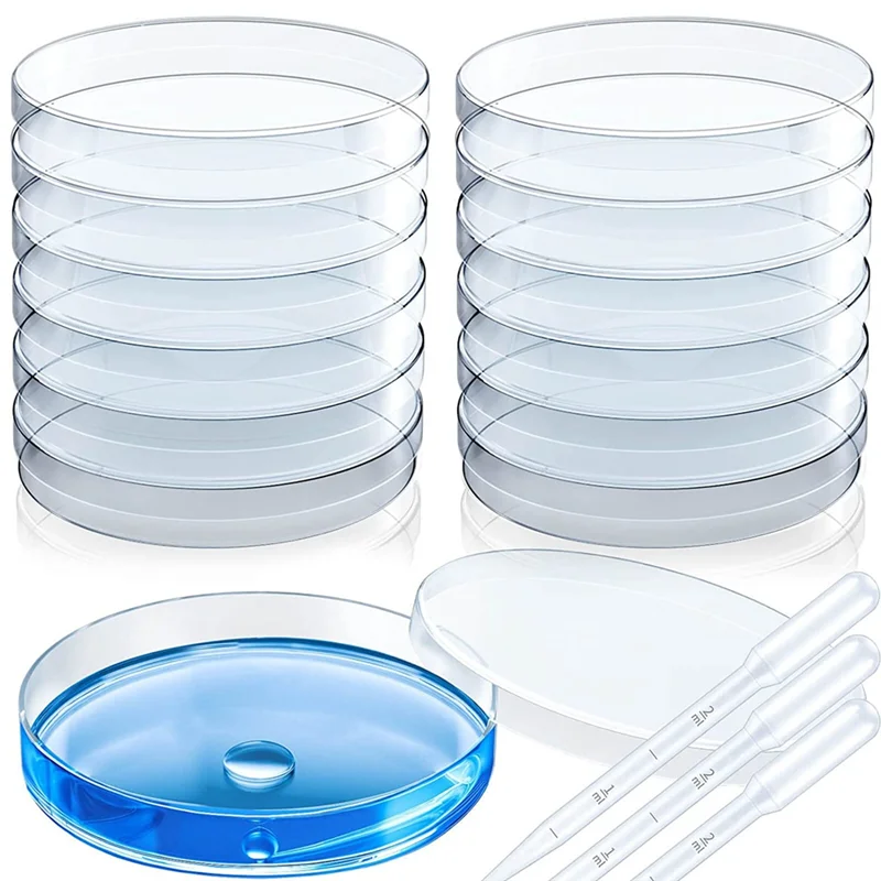 Placas de Petri de 12 y 90mm x 15mm + cuentagotas de pipeta de prueba de 10 piezas (0,2 ml)