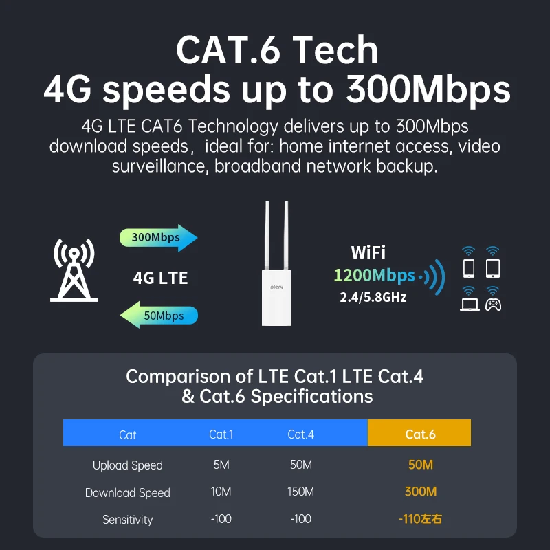 las necesidades de múltiples usuarios para acceso a Internet de alta velocidad simultáneamente.También está equipado con un Cat.6 4G.