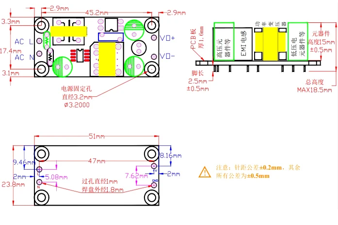 PLG06A Módulo de fuente de alimentación con interruptor de conmutación aislado AC-DC de precisión 220V a 3,3 V/1,2A 5V/1A 9V/0,6A 12V/0,5A 15V/0,4A 24V/0,25A