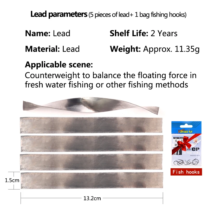 Plomo de carga cortable de 5 piezas + 1 bolsa de anzuelos, plomo de pesca, plomo sin aceite, plomo de pesca, herramienta de pesca de agua dulce de plomo suave de alta calidad