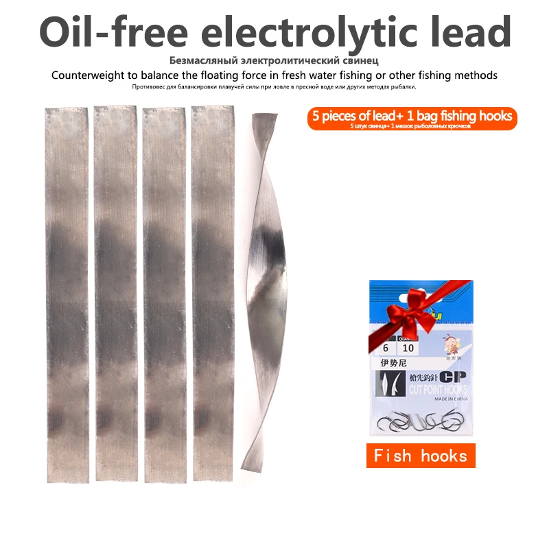 Plomo de carga cortable de 5 piezas + 1 bolsa de anzuelos, plomo de pesca, plomo sin aceite, plomo de pesca, herramienta de pesca de agua dulce de plomo suave de alta calidad
