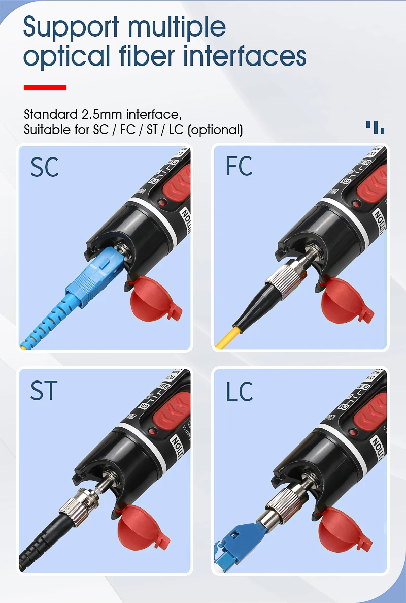 Pluma probadora de Cable de fibra óptica FTTH, localizador Visual de fallos de 1/10/20/30/50mw, interfaz SC/FC/ST de 2,5mm, herramienta de prueba de fibra óptica VFL