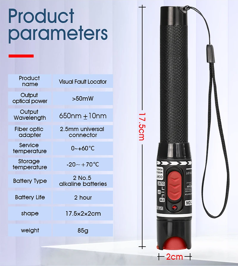 Comprar Pluma probadora de Cable de fibra óptica FTTH, localizador Visual de fallos de 1/10/20/30/50mw, interfaz SC/FC/ST de 2,5mm, herramienta de prueba de fibra óptica VFL