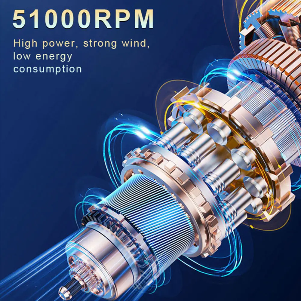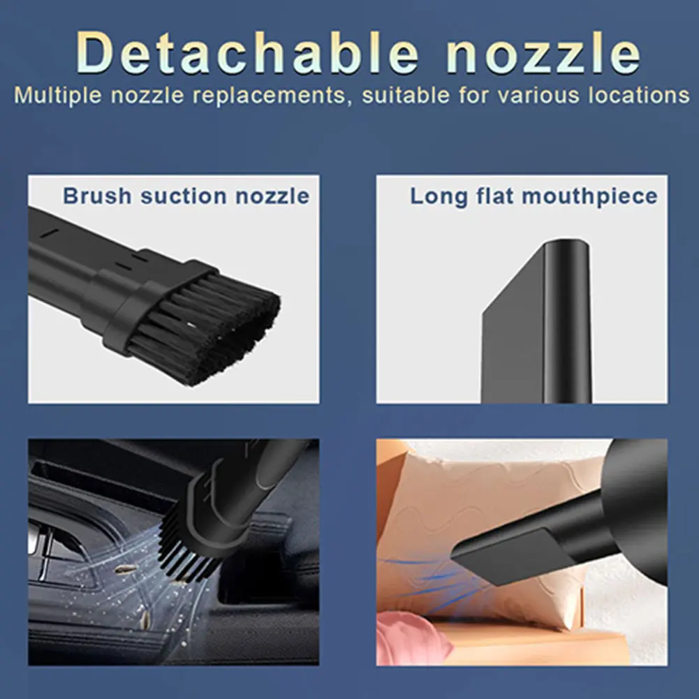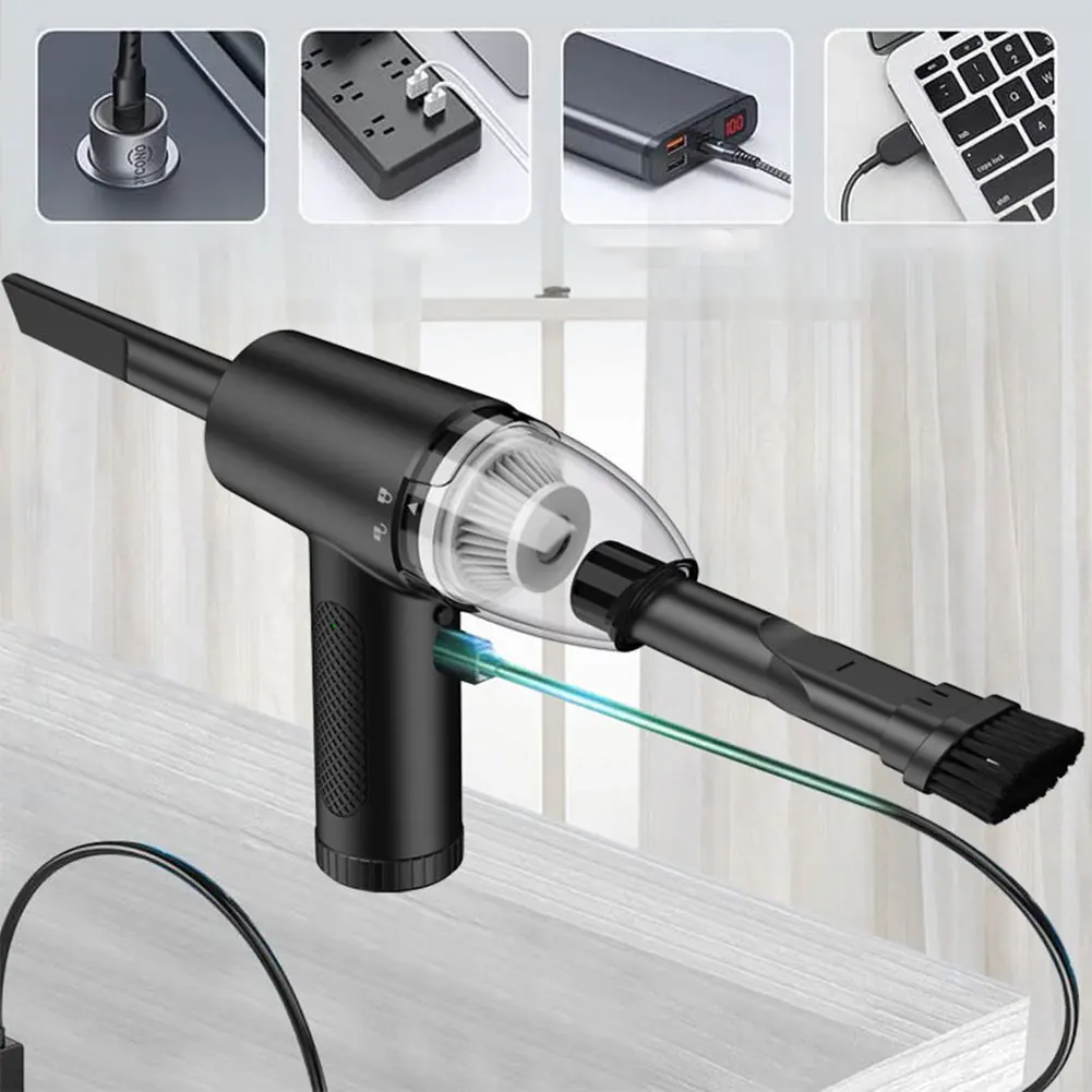 2.Potencia duradera:Equipado con una robusta batería de 6000 mAh, este plumero de aire eléctrico ofrece una resistencia impresionante, lo que le permite completar múltiples tareas de limpieza con una sola carga.Es perfecto para un uso prolongado sin necesidad de recargas frecuentes.