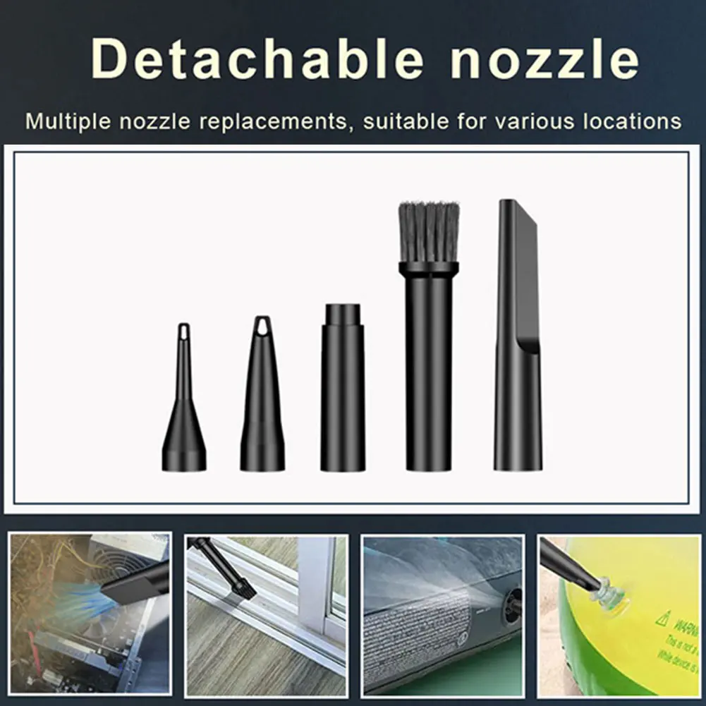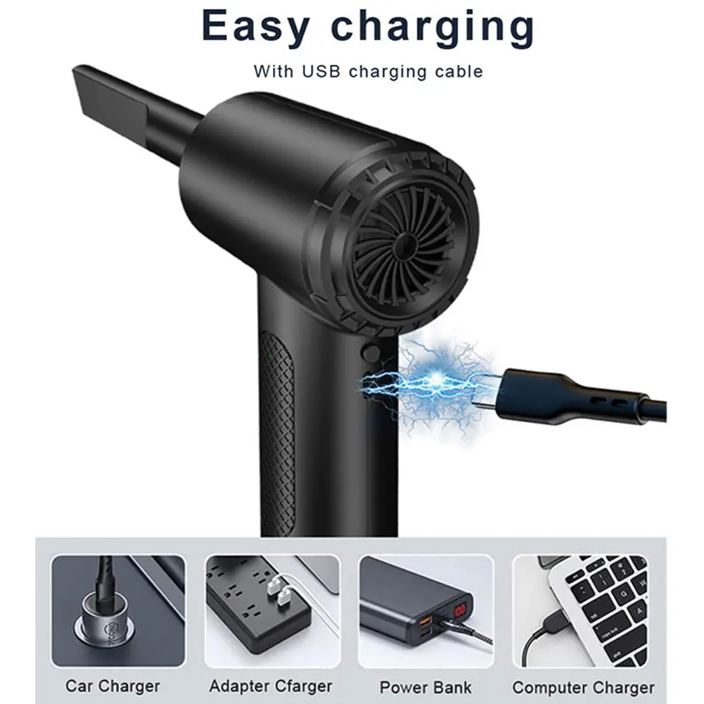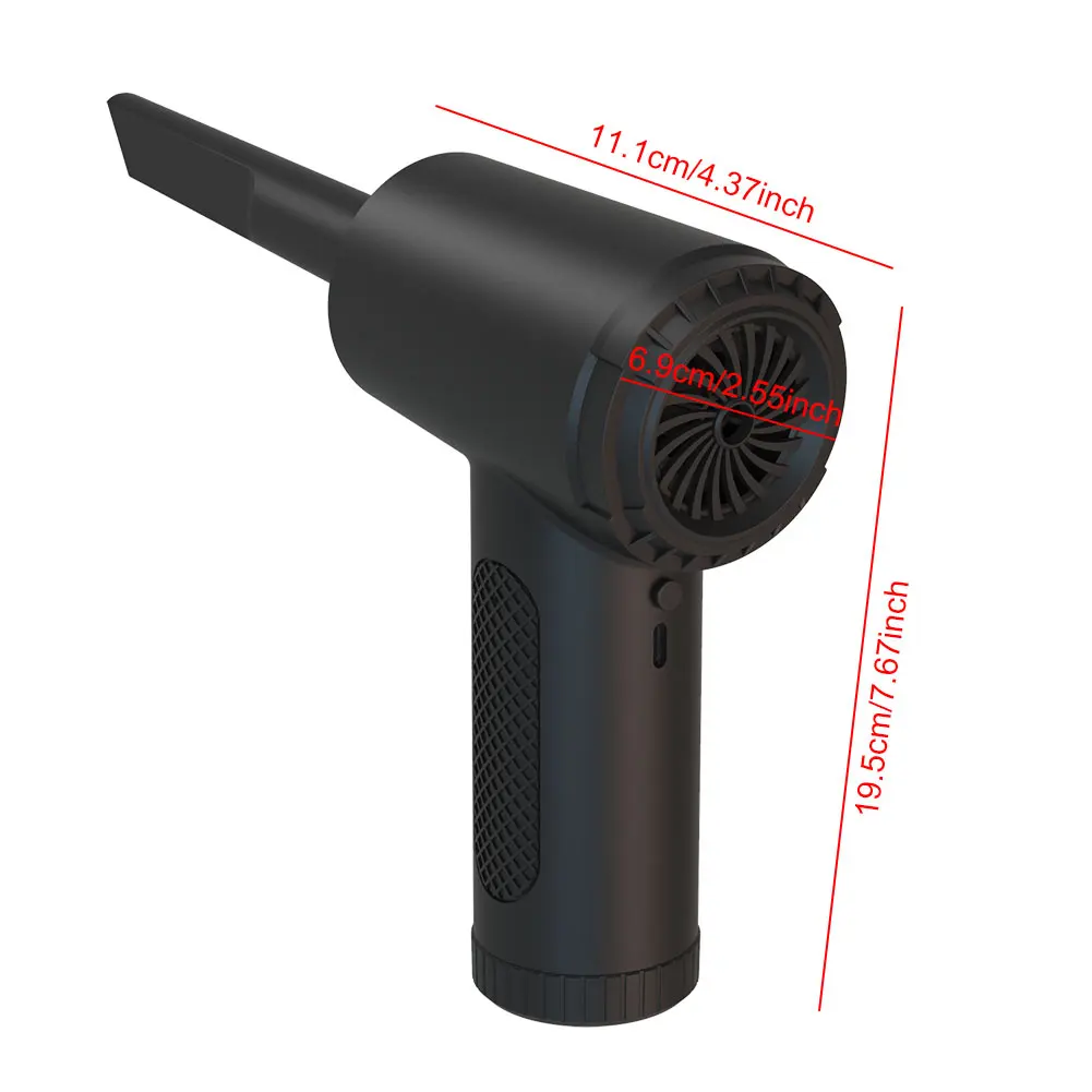 5.Aplicación multisuperficie:Adecuado para una amplia gama de entornos, este soplador de aire inalámbrico recargable es perfecto para limpiar todo, desde componentes y muebles de computadora hasta interiores de automóviles y espacios exteriores.Su versatilidad la convierte en una herramienta esencial para mantener la limpieza en diferentes superficies.