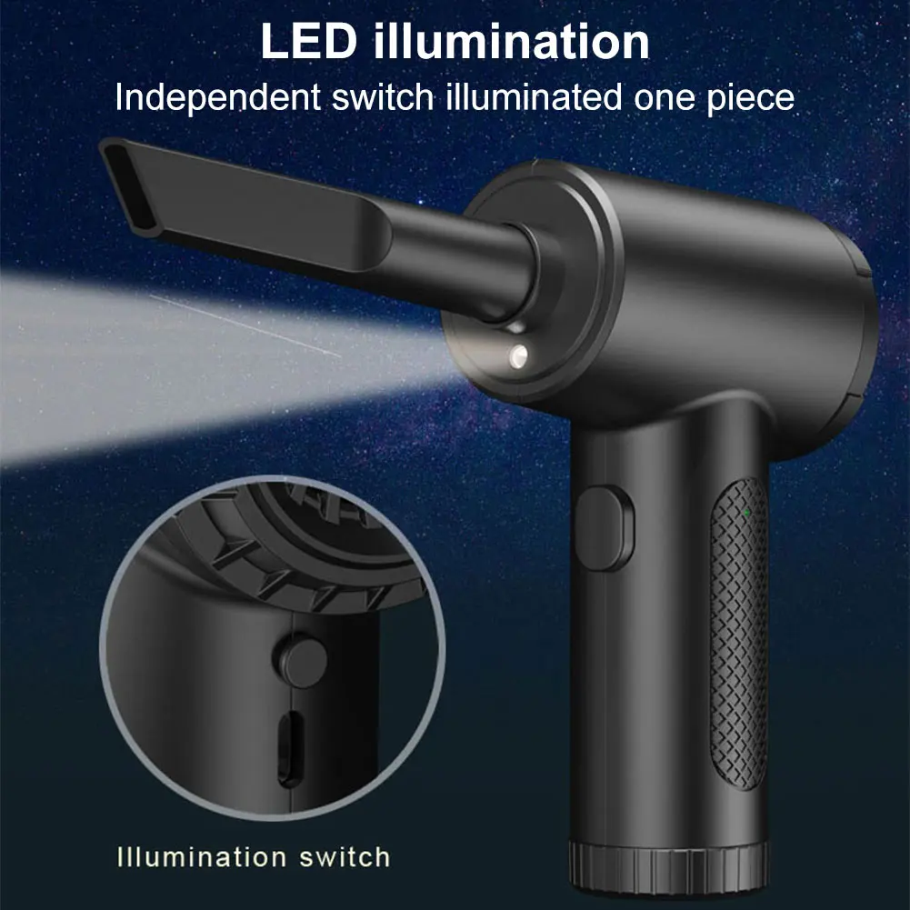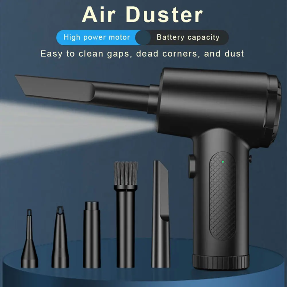 5.Aplicación multisuperficie:Adecuado para una amplia gama de entornos, este soplador de aire inalámbrico recargable es perfecto para limpiar todo, desde componentes y muebles de computadora hasta interiores de automóviles y espacios exteriores.Su versatilidad la convierte en una herramienta esencial para mantener la limpieza en diferentes superficies.
