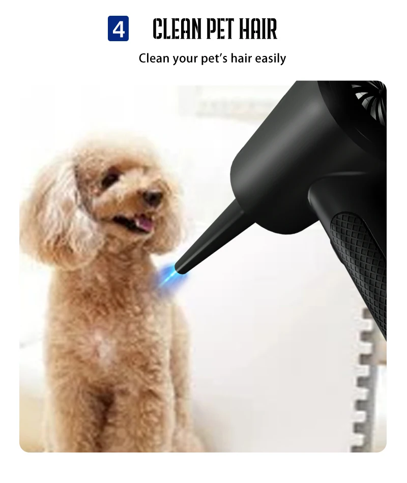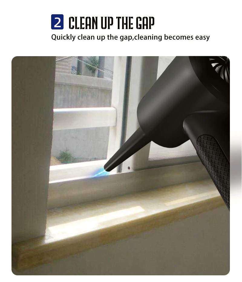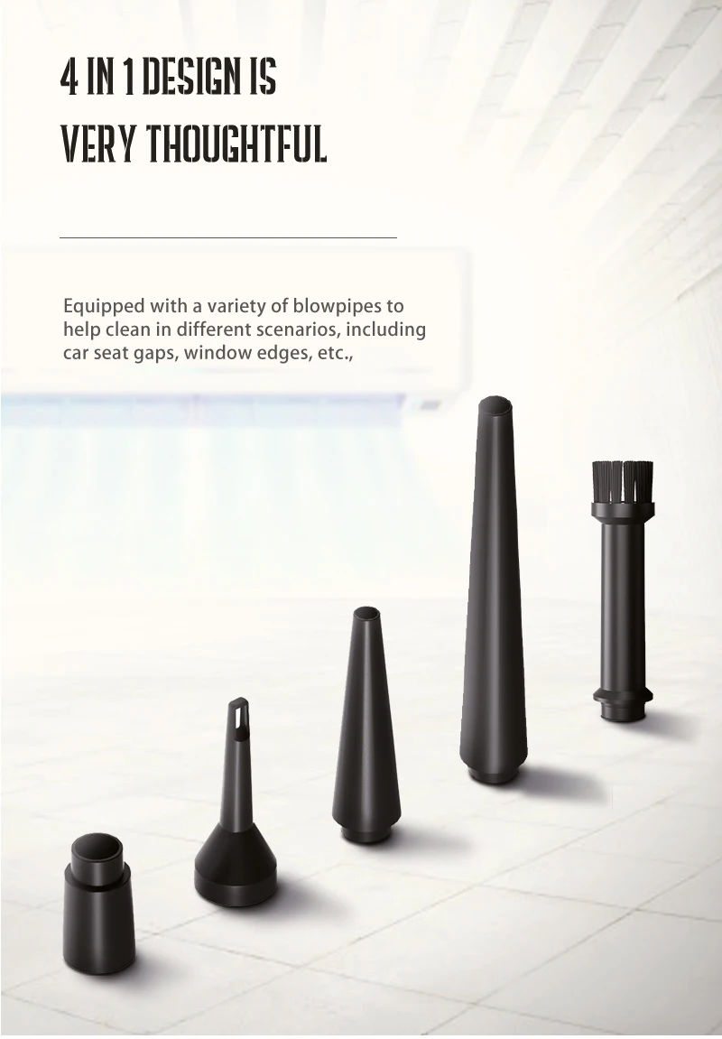 Equipado con una variedad de soplos tohelp limpia en diferentes escenarios, includingcar huecos de asiento, los bordes de la ventana, etc.