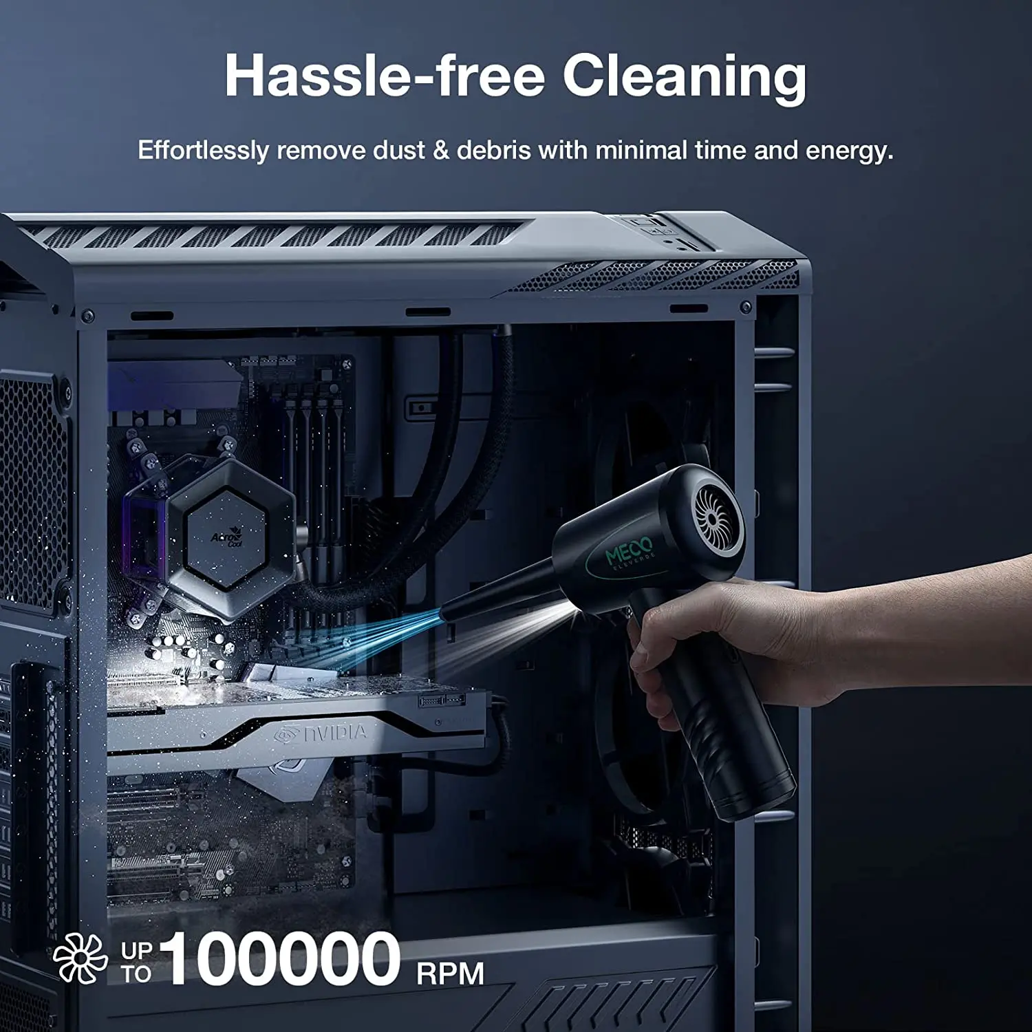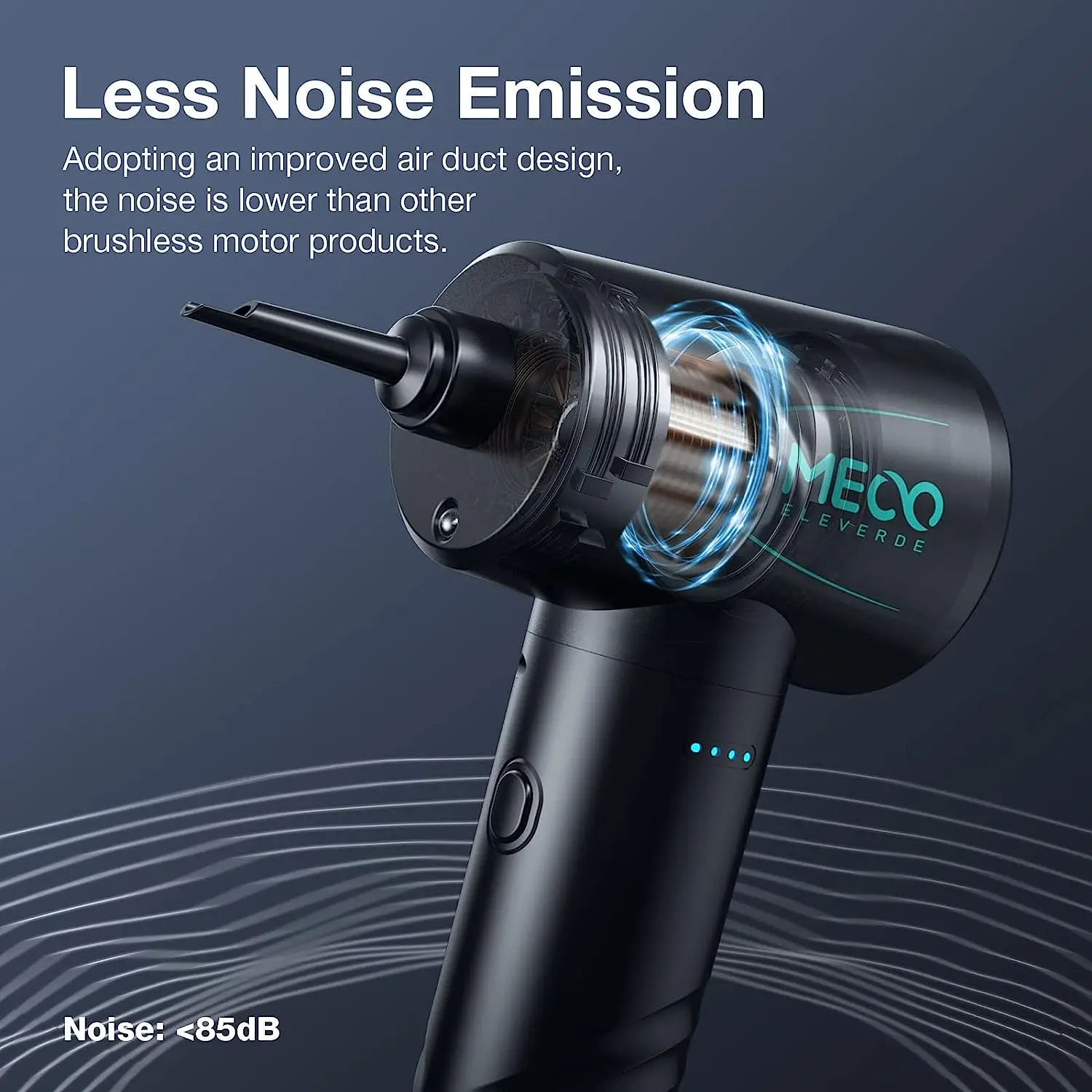 【Potencia de soplado superior】 El aire comprimido MECO cuenta con un diseño de conducto de aire de boca acampanada, que eleva su capacidad de soplado en un 22% sobre las alternativas estándar. Con una velocidad del viento que alcanza hasta 100.000 RPM, produce un flujo de aire ultrapotente, optimizado para misiones de limpieza profunda.