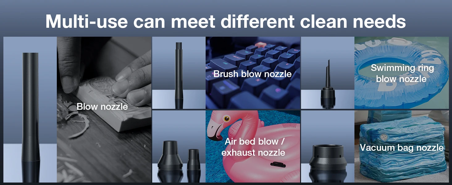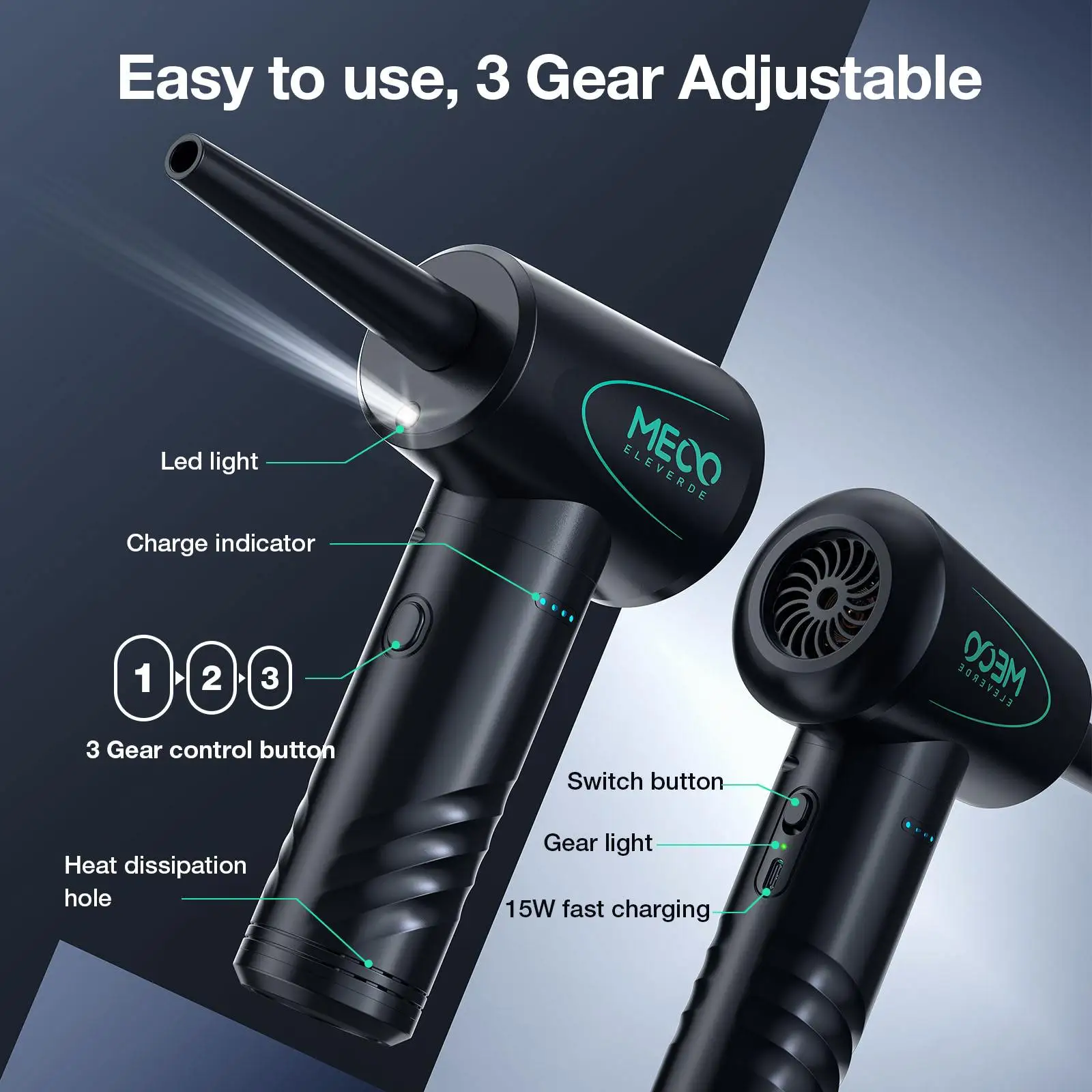 【Accesorios multifuncionales y luz LED 】El soplador de polvo MECO está equipado con una serie de boquillas y un cepillo para una limpieza mejorada, que se adapta a diversas necesidades. El plumero de aire permite una fácil limpieza en áreas difíciles de alcanzar. Las luces LED incorporadas se iluminan automáticamente cuando se enciende el dispositivo, iluminando las esquinas oscuras, agregando una capa adicional de comodidad a su rutina de limpieza.