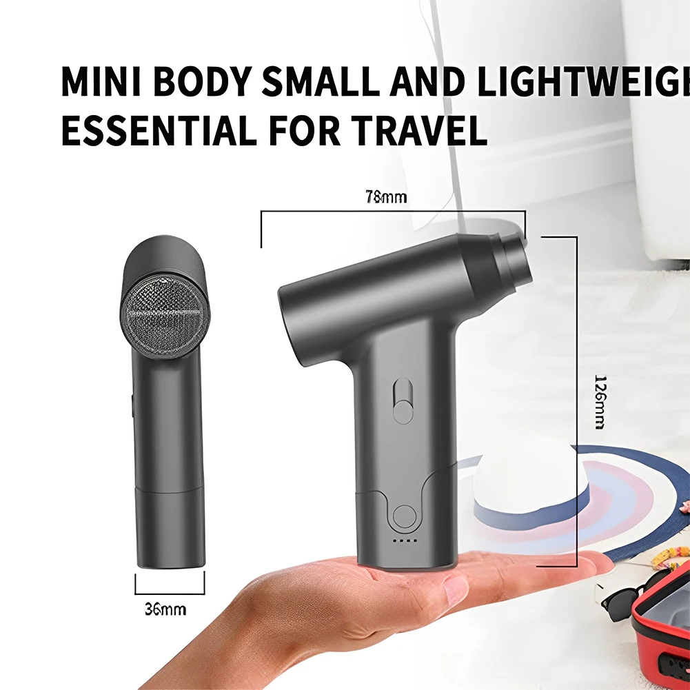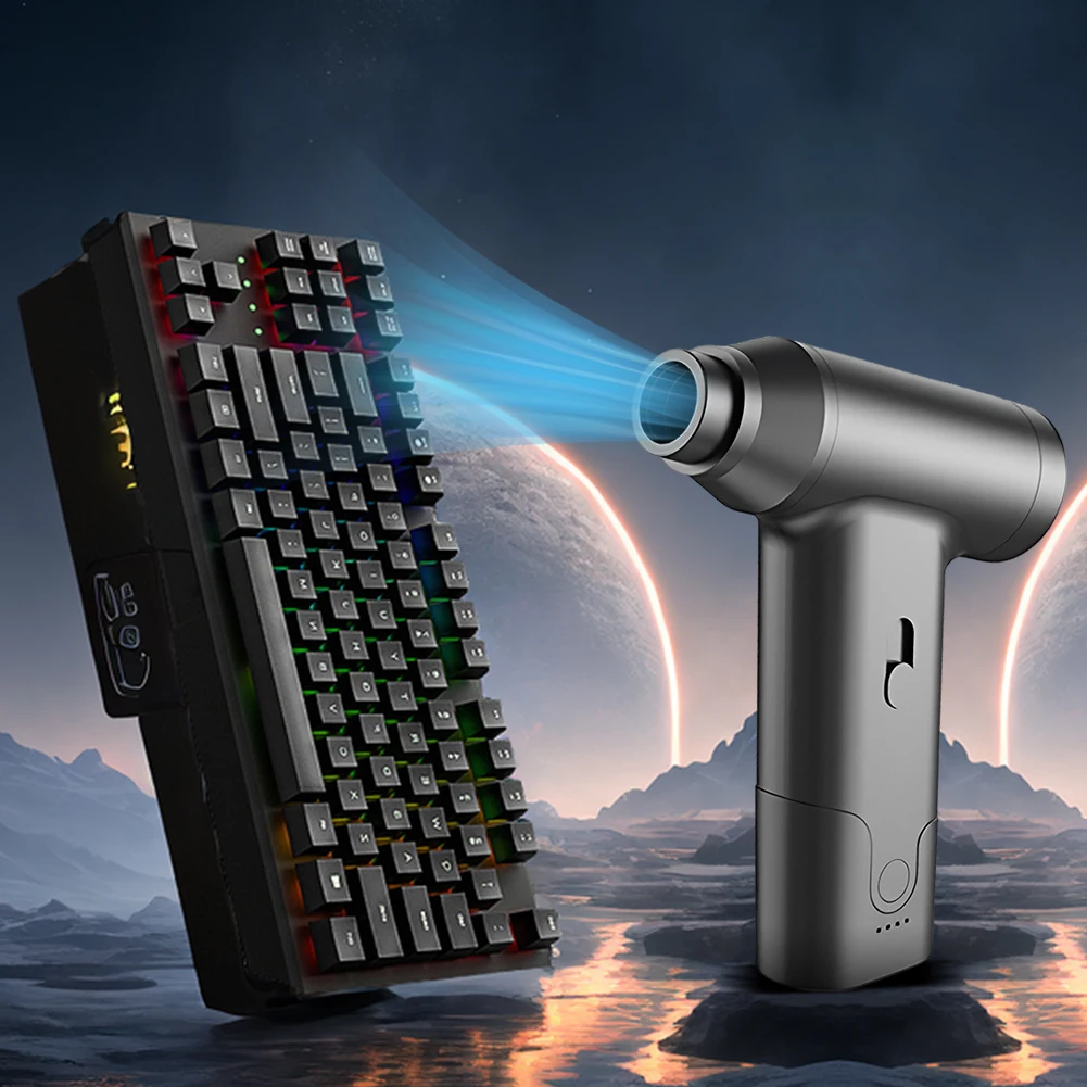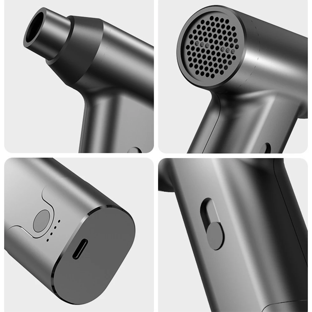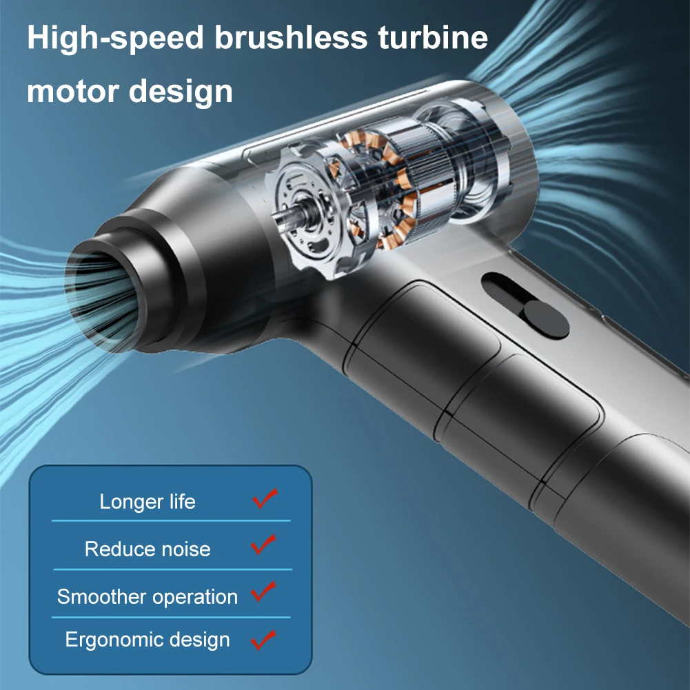 1.Control de velocidad ajustable:El plumero de aire comprimido cuenta con un motor sin escobillas con velocidades ajustables que oscilan entre 40.000 rpm y 110.000 rpm.El flujo de aire del Mini Blower Turbo Fan se puede ajustar fácilmente para adaptarse a diversas tareas, proporcionando un poder de limpieza preciso.