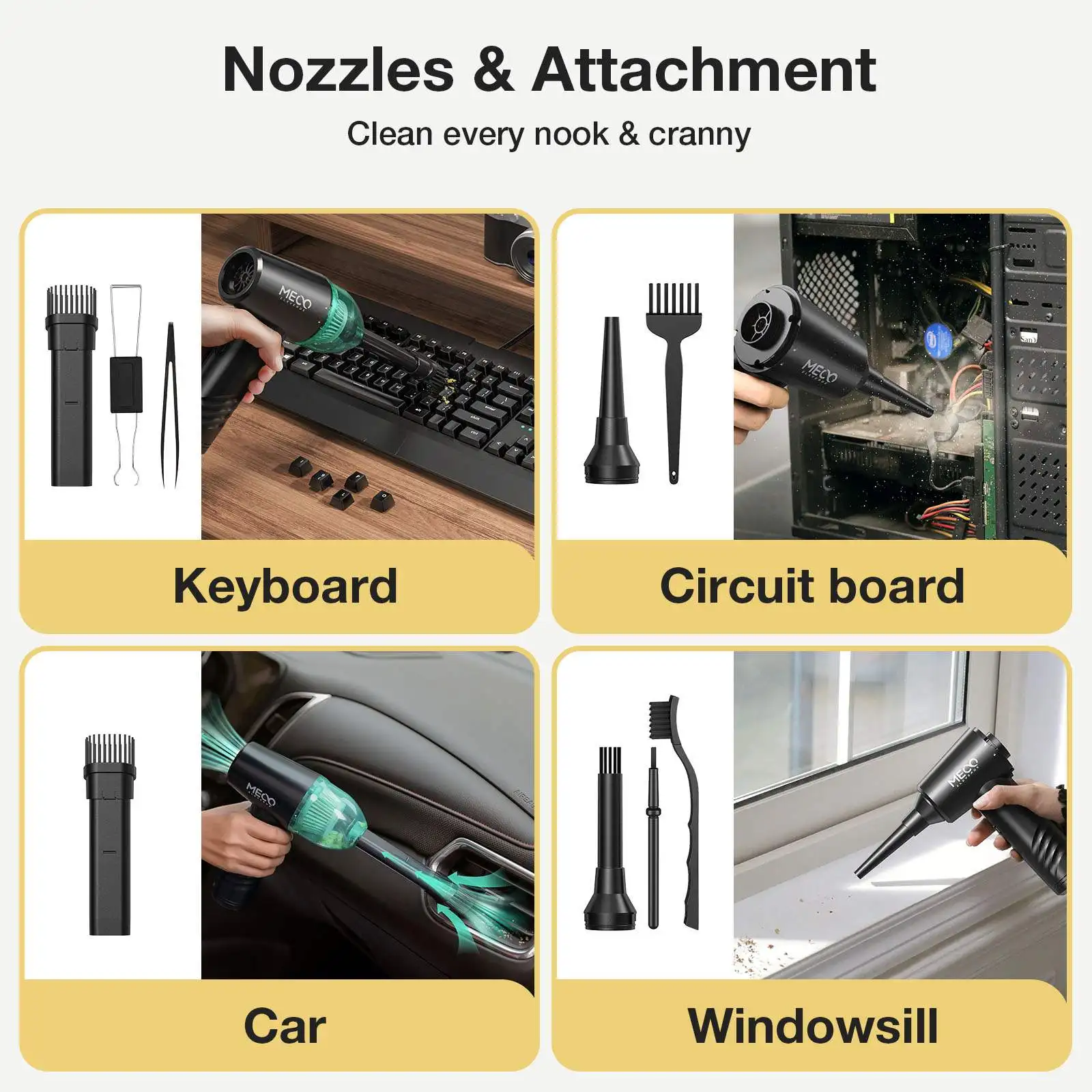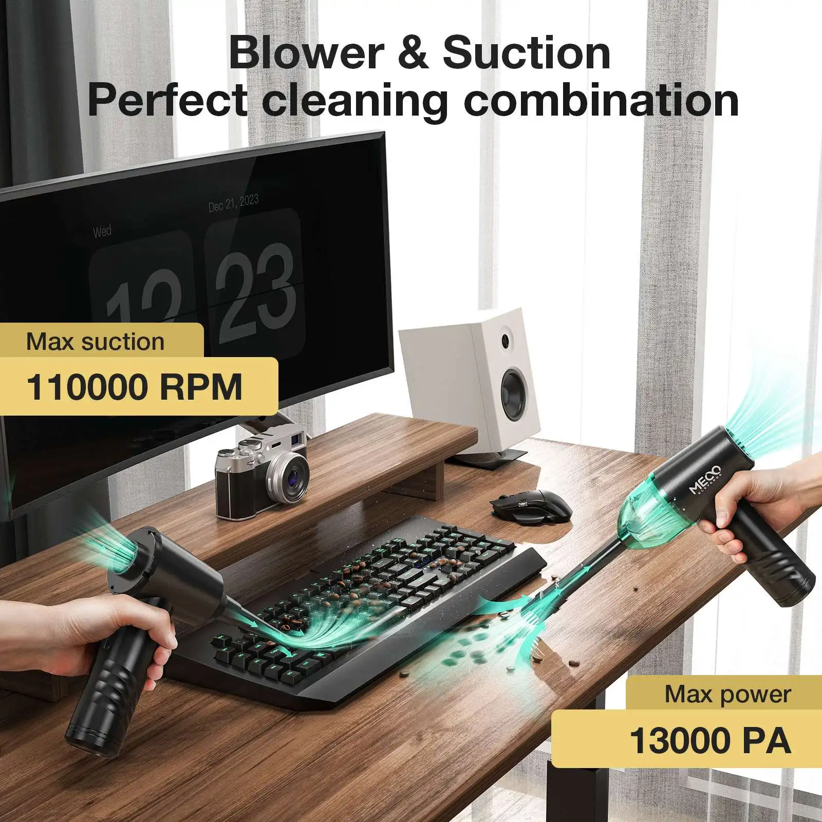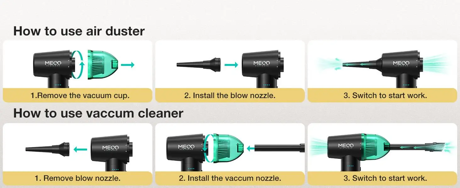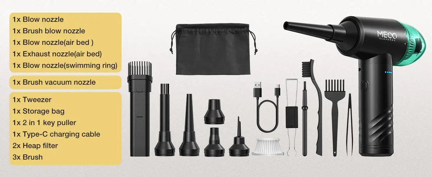 1. Diseño de doble función: se puede utilizar tanto para soplar como para succionar, lo que lo hace versátil para limpiar teclados.