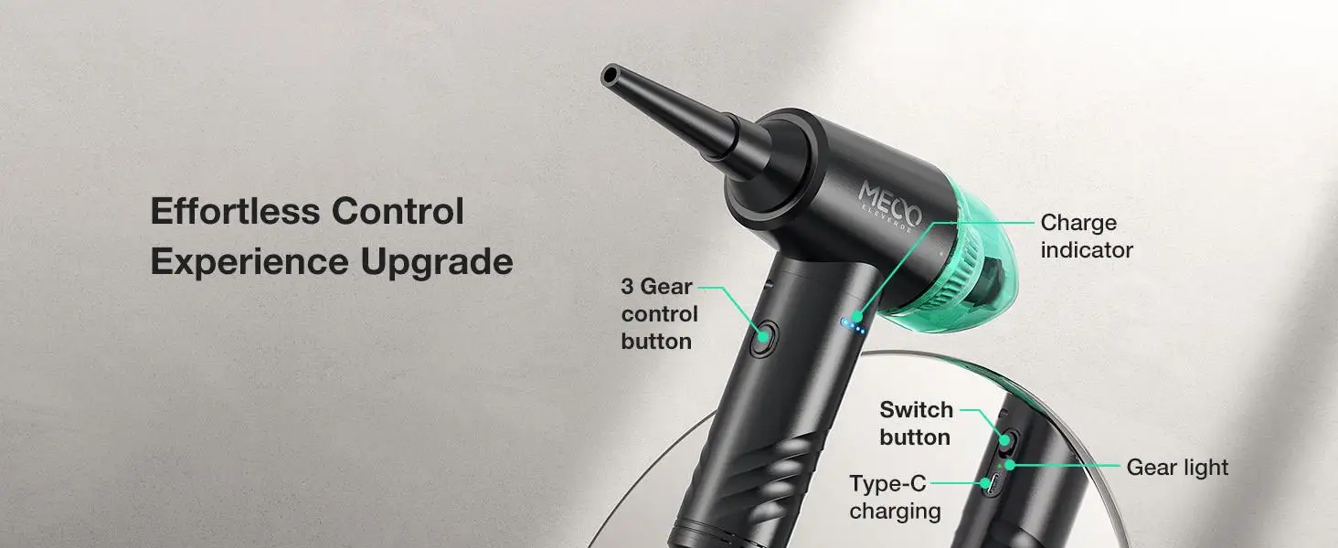Comprar Plumero y aspirador de aire comprimido CR1, soplador de aire eléctrico MECO de 110000RPM, 13000PA, limpiador de teclado con 3 engranajes recargables, 2 en 1
