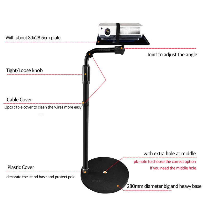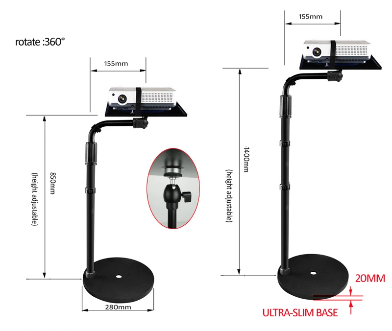 Comprar PMA-T6-85160II-P soporte de suelo de bandeja de proyector de base ultrafina ajustable en altura de 280mm con placa al lado del orificio central del sofá cama 5kg