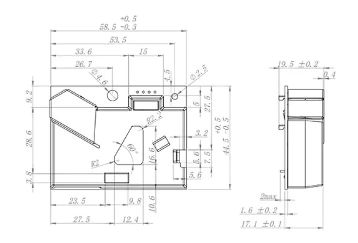 Dimensiones: 59,5 × 44,5 × 20 mm
