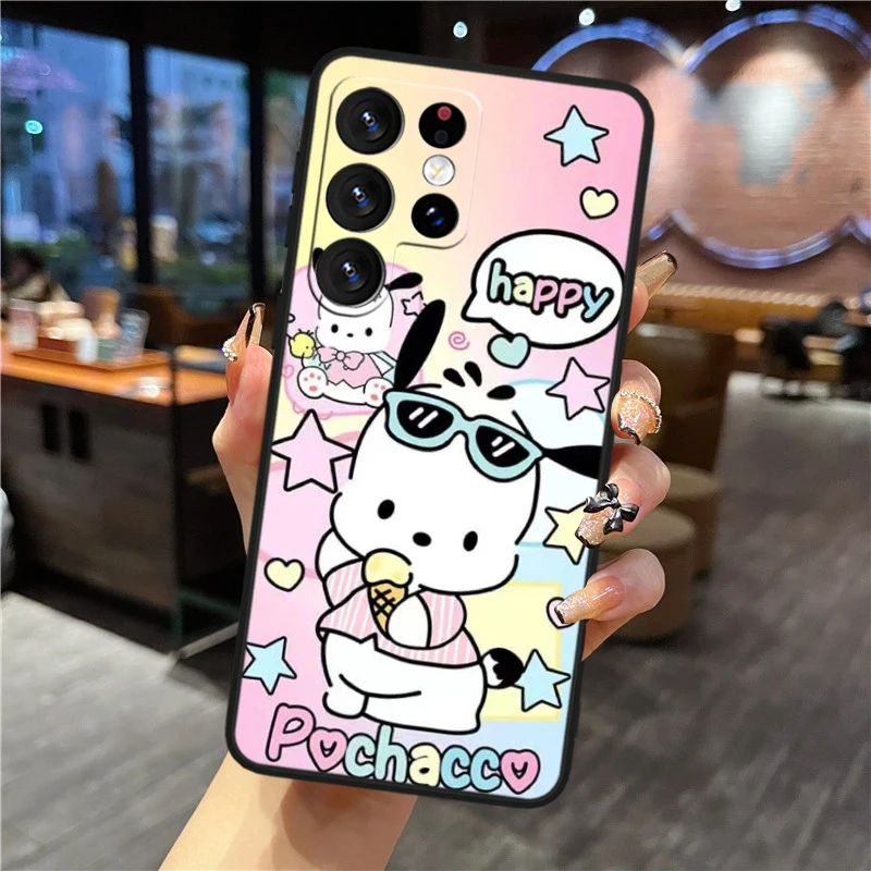 Comprar Pochacco-funda de teléfono de TPU suave a prueba de golpes para Samsung Galaxy S24, S23, S22, S21, S20 FE, S10 Ultra Plus, color negro