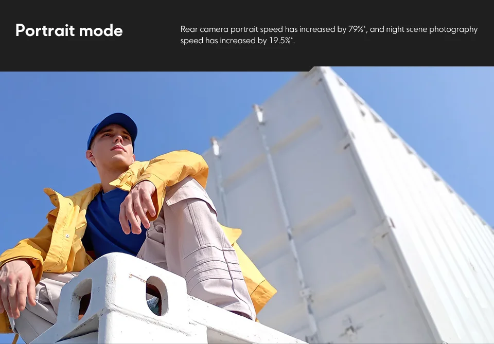 La velocidad del retrato de la cámara trasera ha aumentado en 79% *, y la velocidad de la fotografía de la escena nocturna ha aumentado en 19.5% *.