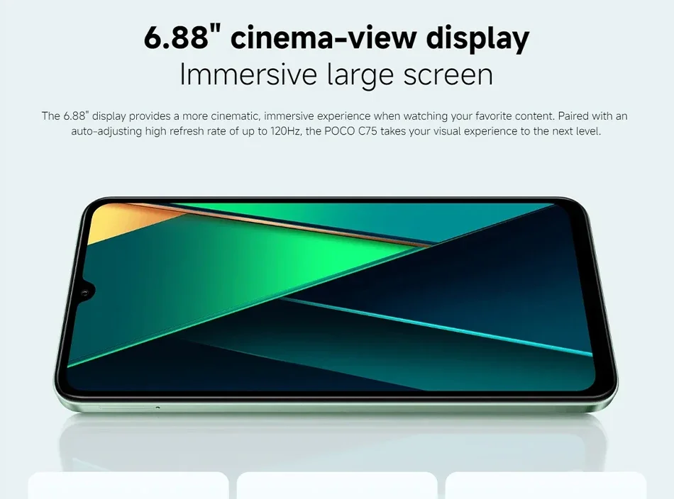 NOTA: Tenga en cuenta que existen dos versiones de POCO C75: Con la versión con cargador y SIN versión con cargador, ¡elija la versión correcta que necesita!Si eliges la versión sin cargador, ¡no habrá cargador en la caja!