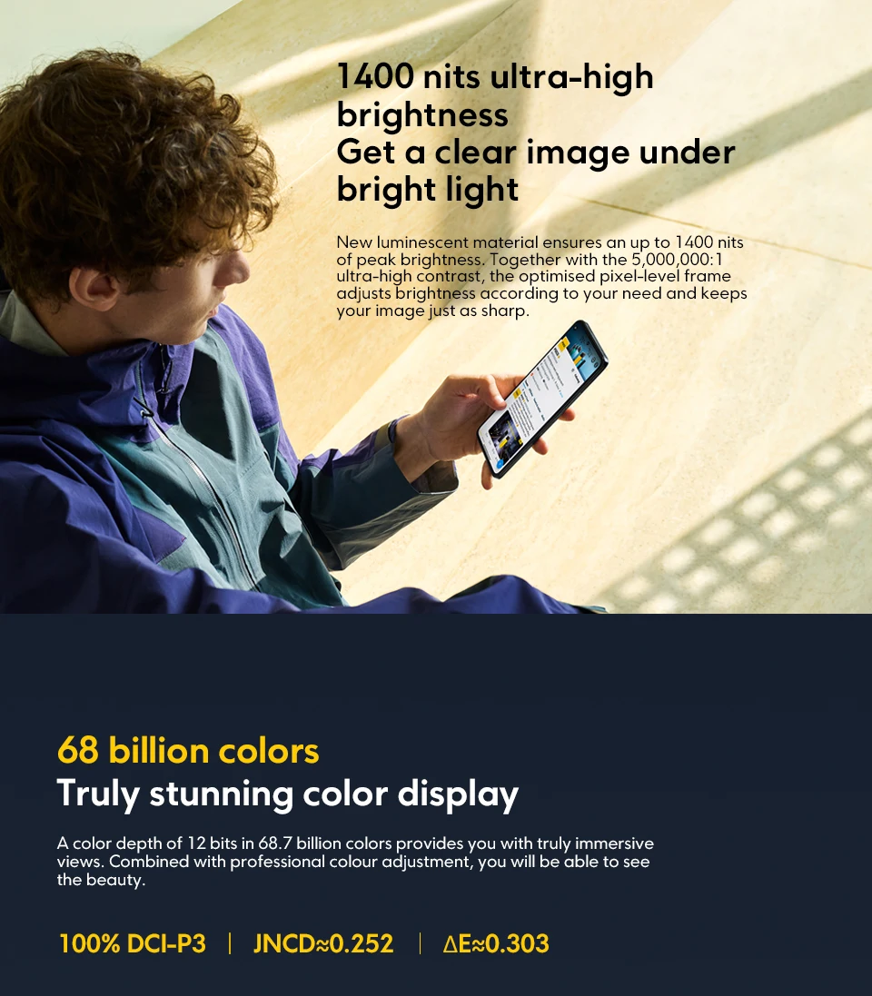 Pantalla ---------- 6,67 "3200x1440 WQHD + FIOW AMOLED DotDisplay, frecuencia de actualización de 120Hz