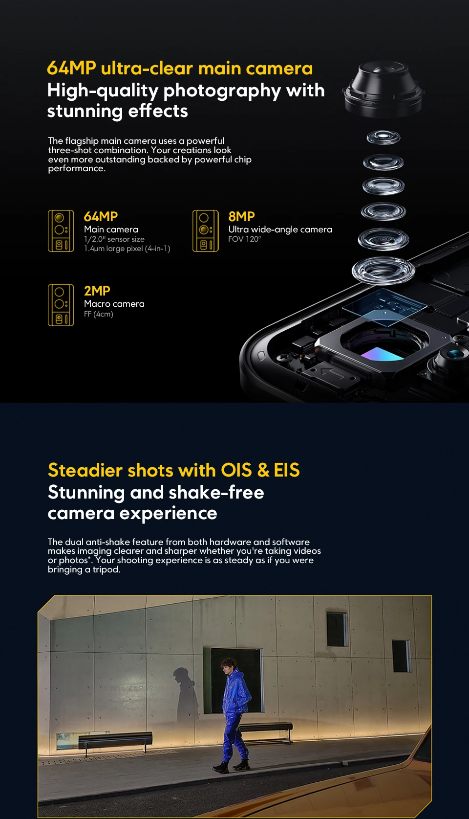 Cámara --------- Cámara trasera triple de 64MP + 8MP + 2MP, cámara frontal de 16MP