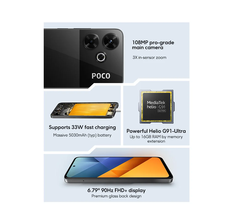Comprar POCO M6 Smartphone Versión Global Helio G91 Ultra 108MP Cámara Principal de Grado Pro 33W Carga Rápida Batería 5030mAh