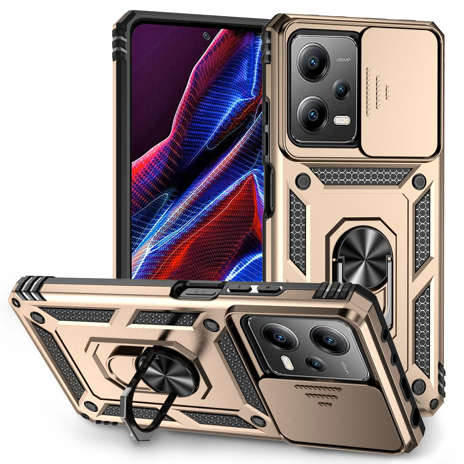 Comprar Para Poco X5 Pro funda para Poco X5 Pro Fundas Coque lente deslizante soporte de anillo parachoques trasero Poco X5 Pro