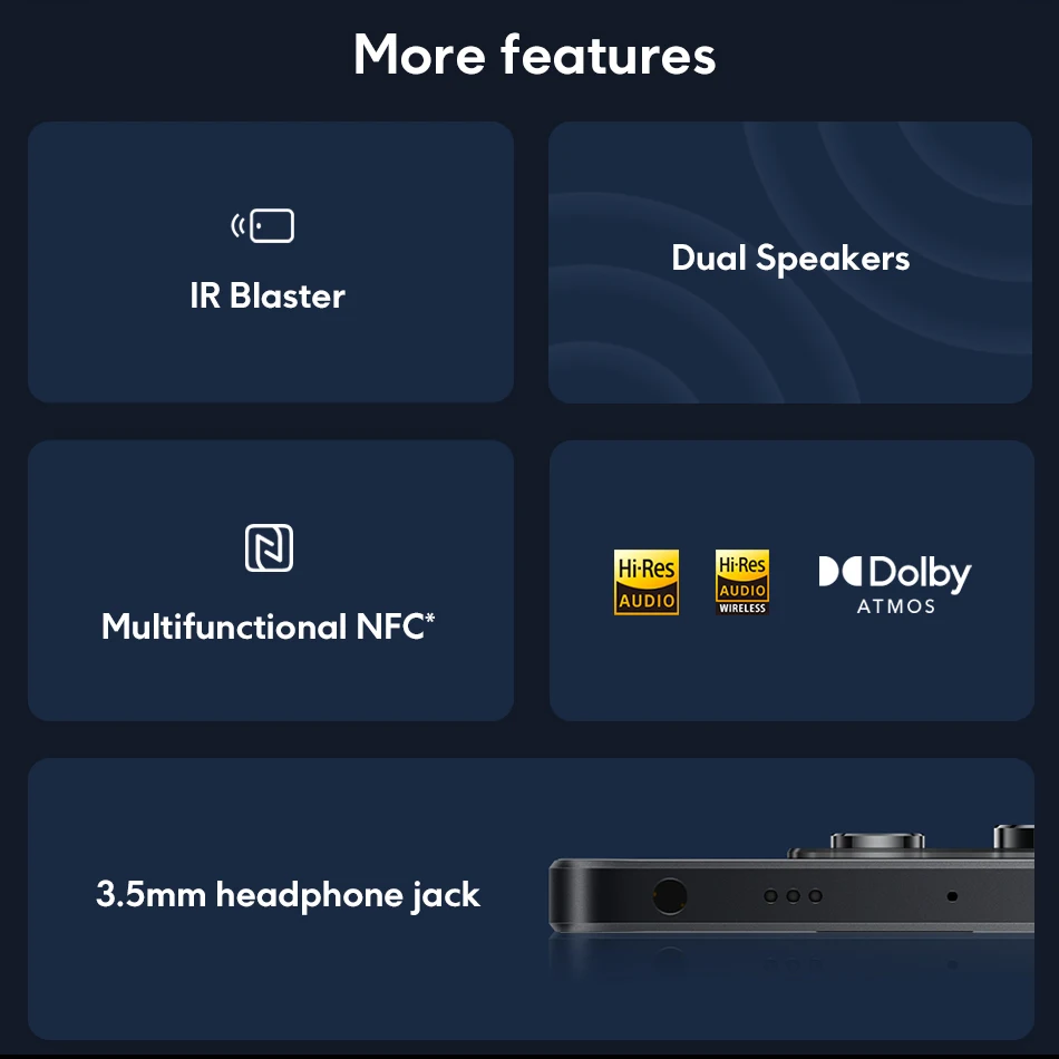 Más características: IR Blaster, altavoces duales, NFC multifuncional *,Dolby ATMOS