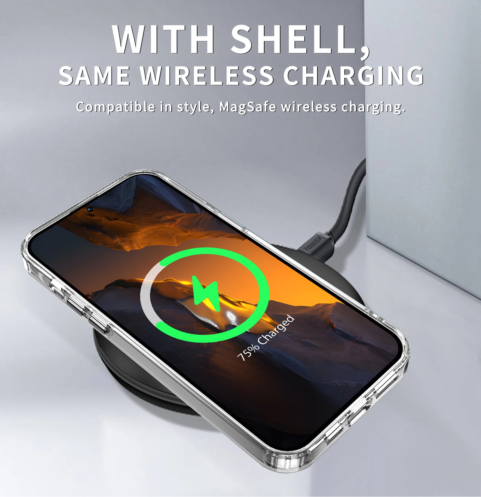 Características: 1. Cubierta trasera dura de acrílico + Marco de TPU suave; 2.No amarillear, HD claro; 3. Botón de galvanoplastia desmontable, fácil de presionar. 4. Diseño de airbag de cuatro esquinas, antigolpes y a prueba de golpes.