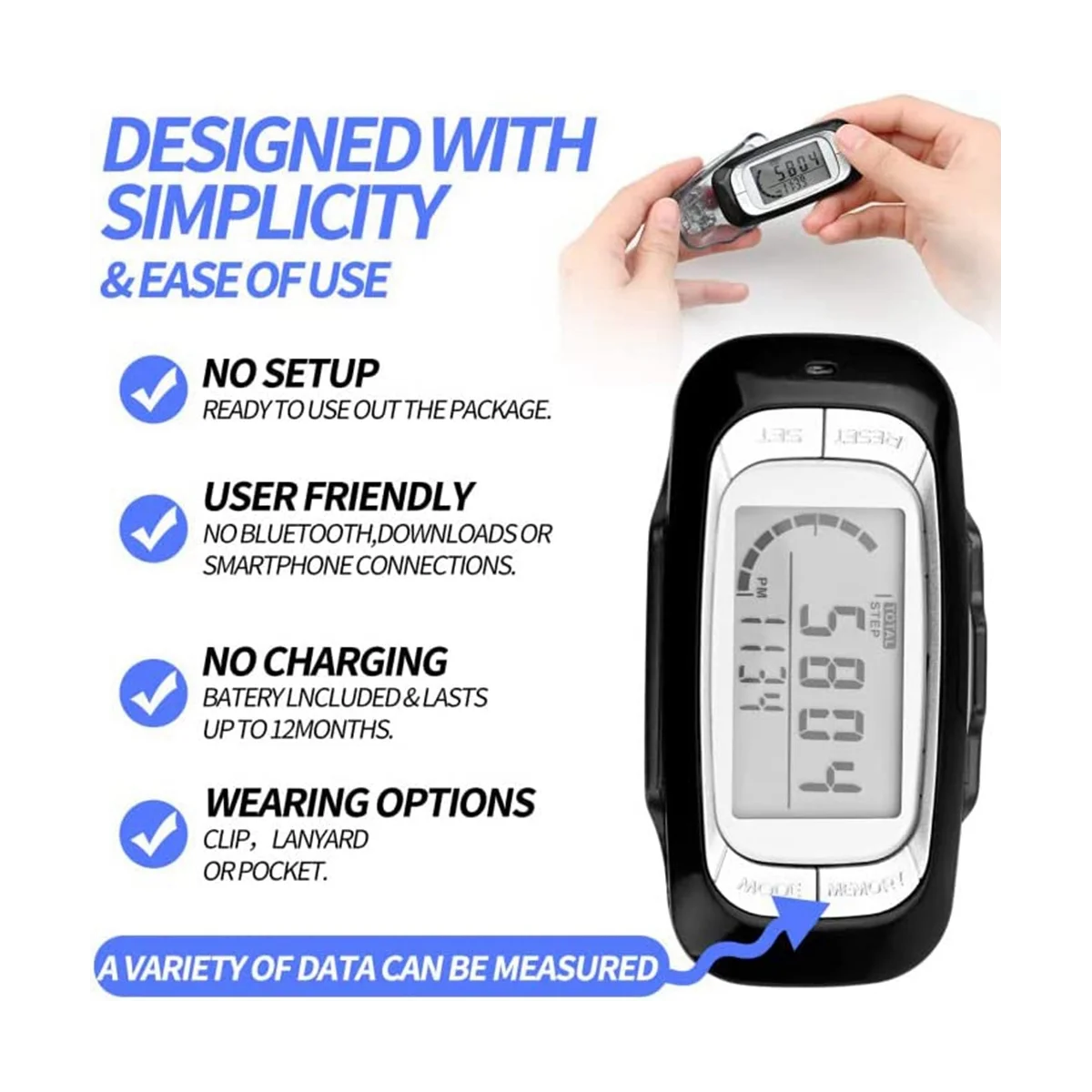 Comprar Podómetro para caminar, pantalla con Clip y cordón, contador de pasos Simple, preciso, 3D