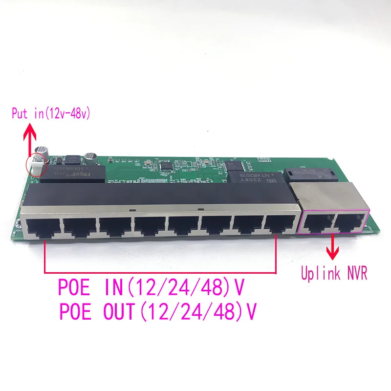 POE (12V/24V/48V) Conmutador poe de 4/8 puertos 8*100 mbps POE (12V/24V/48V) deficiente; Enlace ARRIBA de 2*100 mbps deficiente;