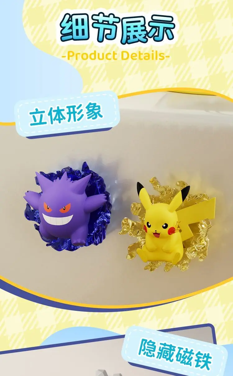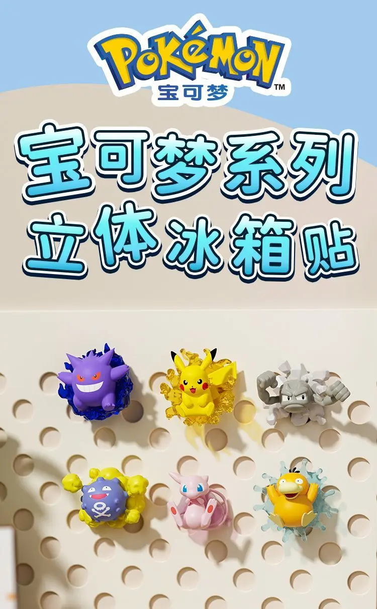 Pokemon Gengar Pikachu Mew Psyduck Koffing Geodude personaje de Anime pegatinas 3D para refrigerador muñecas figuras juguetes regalos de cumpleaños
