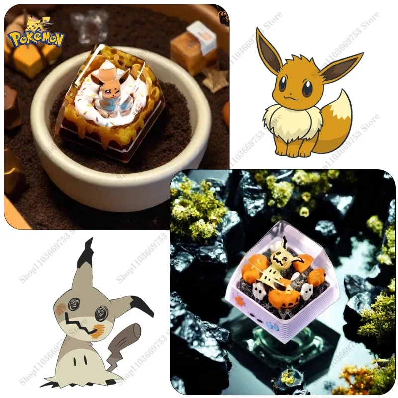 Comprar Pokemon resina Keycap personajes de Anime Pikachu Mega Gengar Eevee Onix 3D Keycaps para teclado mecánico accesorios lindos regalos