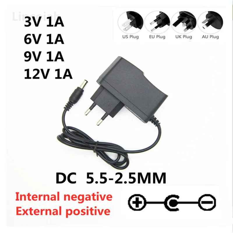 Comprar Polaridad opuesta AC 100-240V DC 3V 6V 9V 12V 1A 1000mA adaptador Universal AC / DC cargador fuente de alimentación polaridad inversa