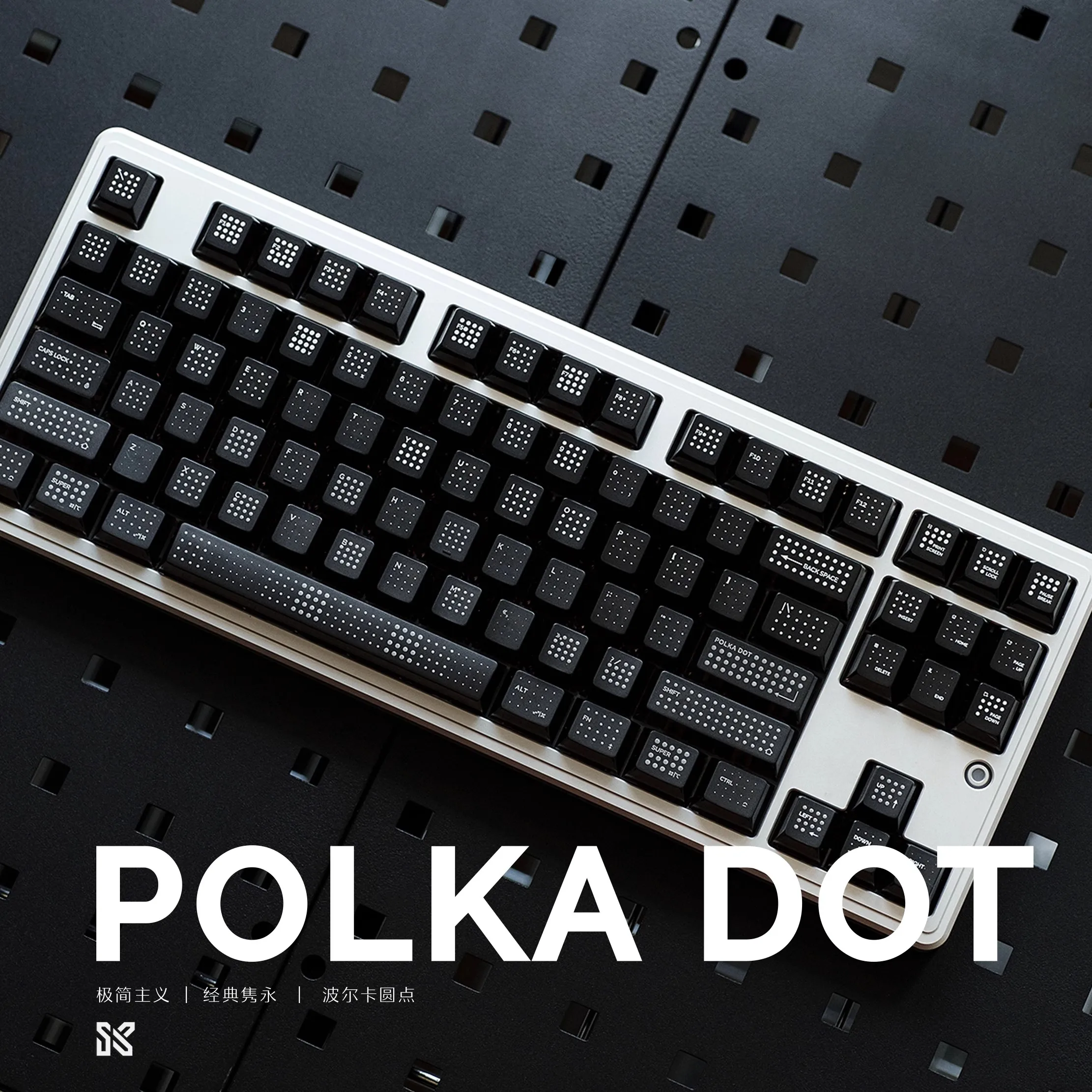 Juego de teclas temáticas POLKADOT, tapa de teclado de punto negro personalizada de 150 teclas para PC, tapa de tecla de perfil de cereza de 1,5mm para teclado mecánico