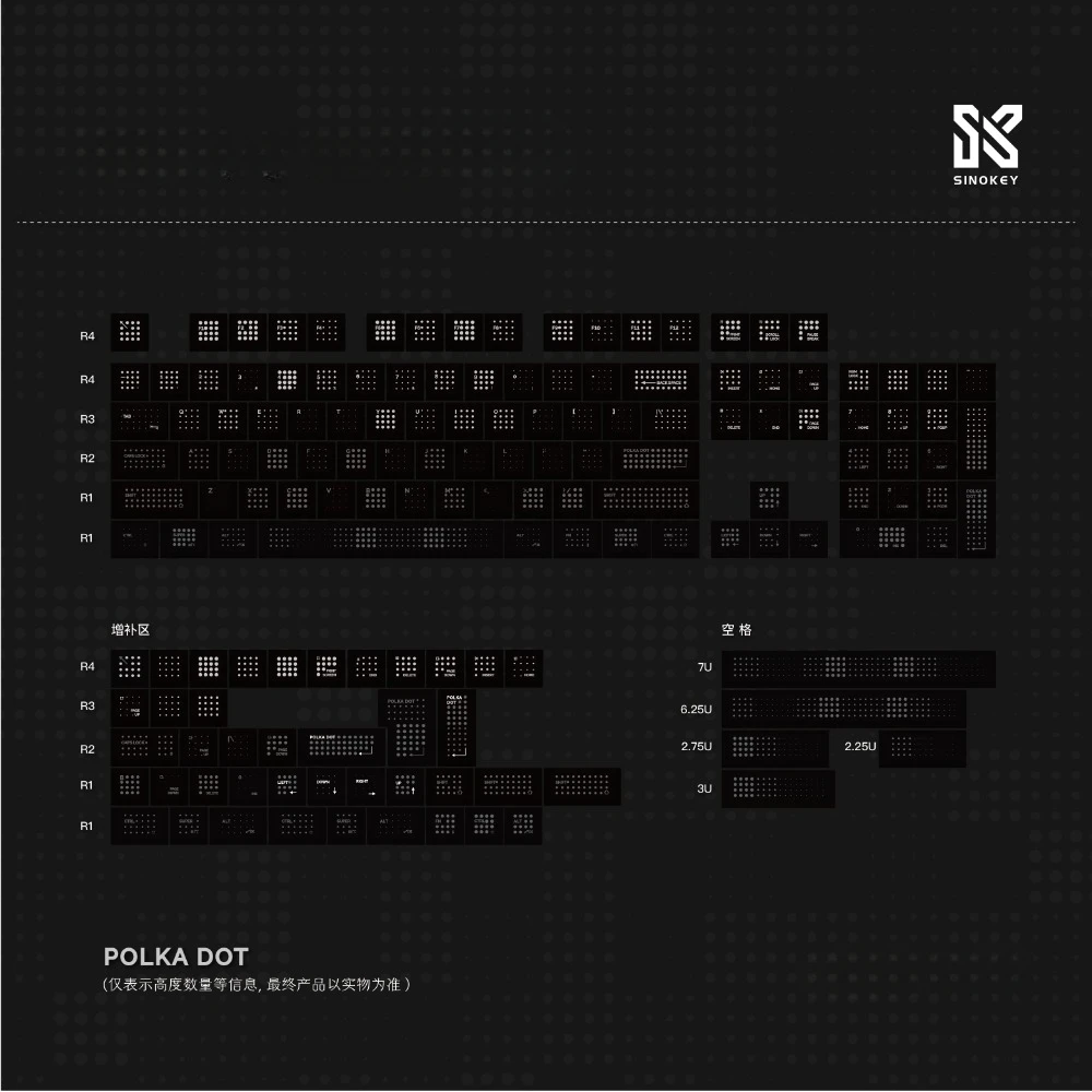 Juego de teclas temáticas POLKADOT, tapa de teclado de punto negro personalizada de 150 teclas para PC, tapa de tecla de perfil de cereza de 1,5mm para teclado mecánico