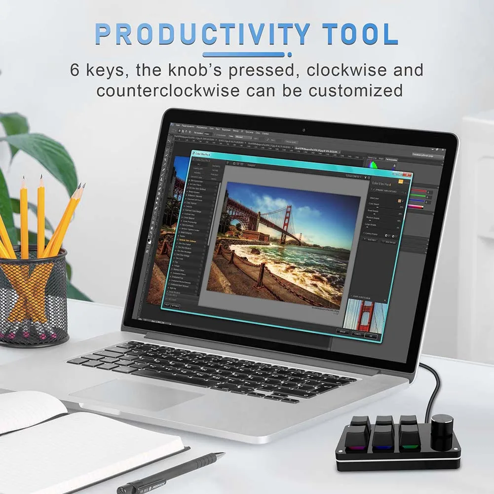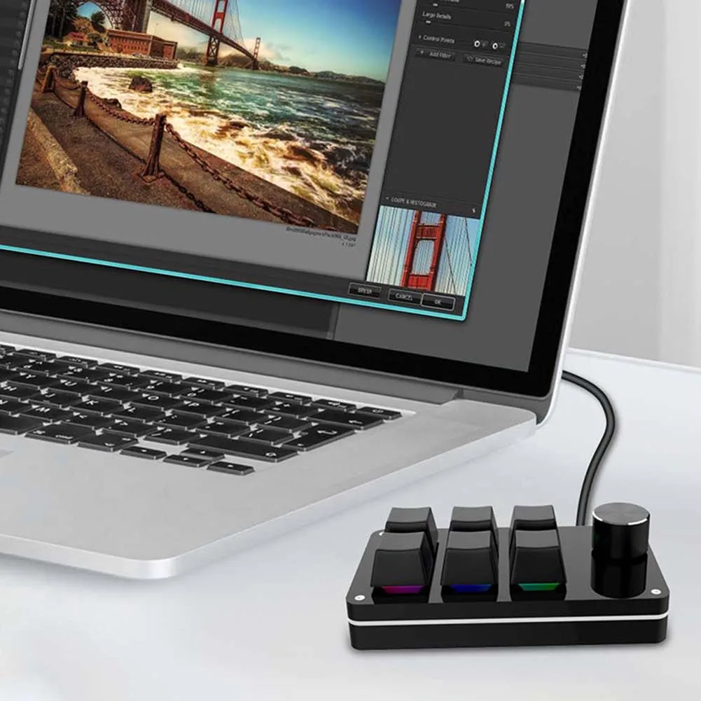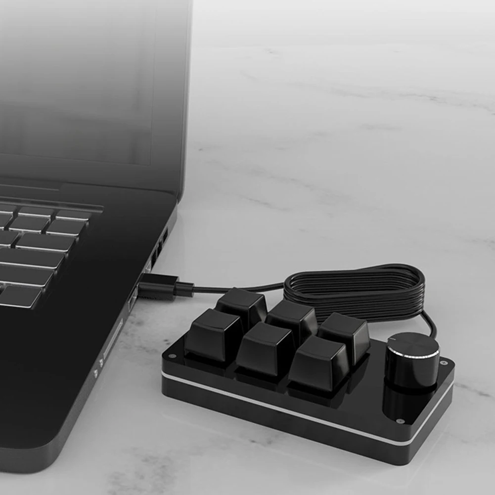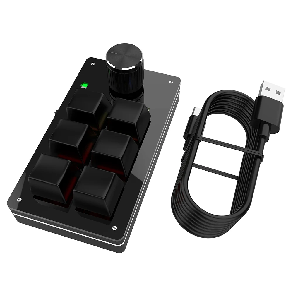 Comprar Pomo de teclado personalizado Macro para juegos, 6 teclas + 1 perilla programable Hotswap, Teclado mecánico de una mano para PS, accesorios de dibujo