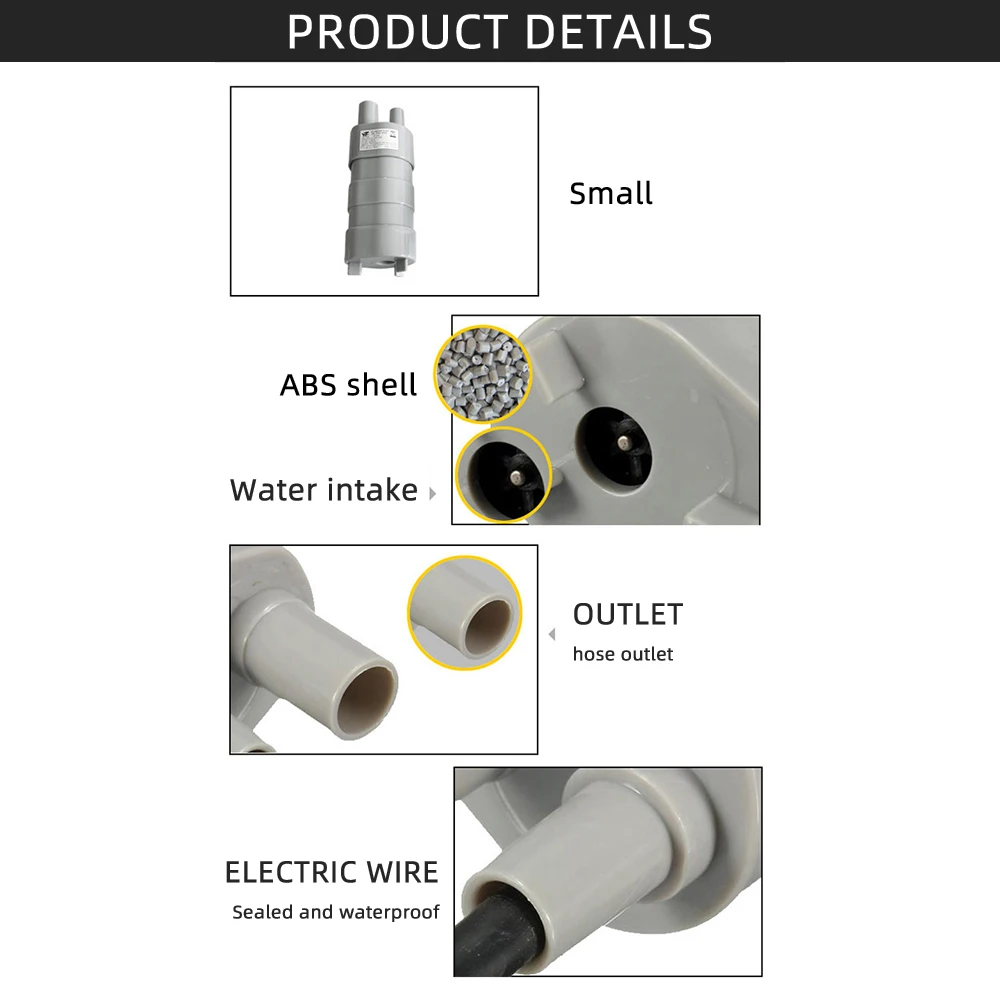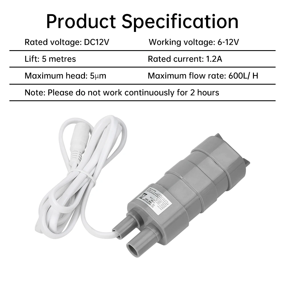 1.It can be connected to the car power supply, and the 12v battery can work, making it easy to move.2.This pump is a submersible pump, not a self-priming pump. The water temperature should not exceed 40℃.3.Low noise, with 1ocm less than 35 decibels.4.When connecting the power supply, pay attention to the negative and positive ones, otherwise the head flow will affect it. When connecting to the positive electrode with a brown line and a blue line connected to the anode, the yellow line does not need to be connected.5.Widely applicable: Suitable for cleaning pumps, washing machine pumps, garden watering, shower pumps, etc.