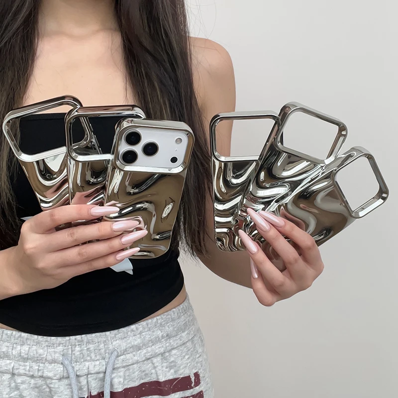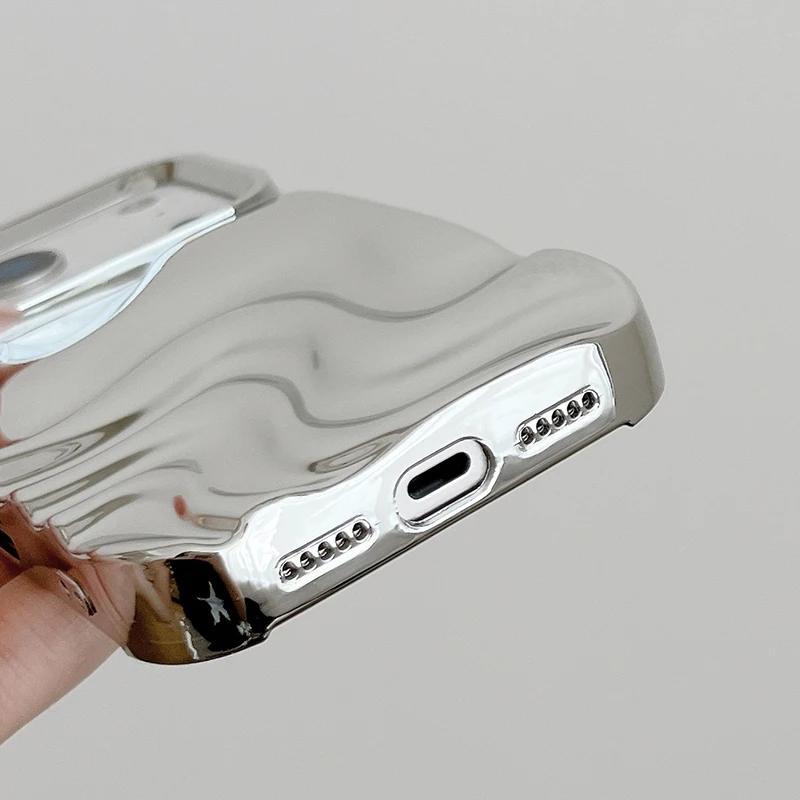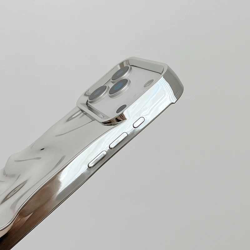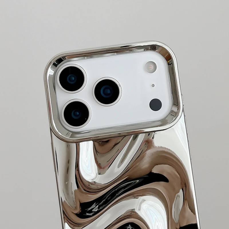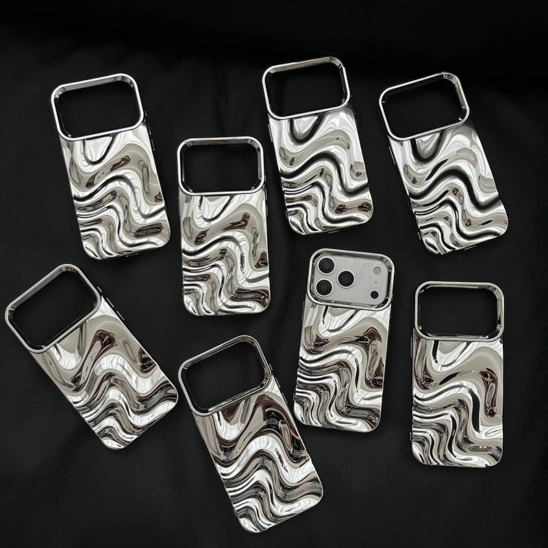 Popular funda de plata brillante 3D con líneas de ondas plegables para iPhone 17 Pro Max Air 16 15 13 14 11 12 funda trasera de TPU suave y brillante