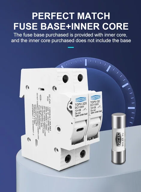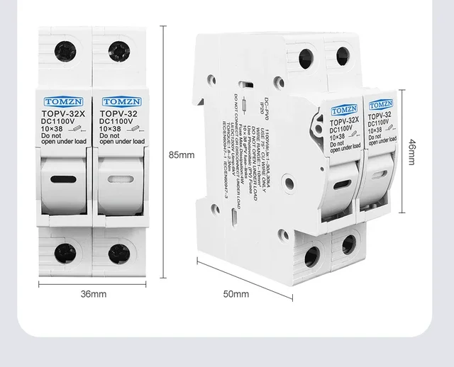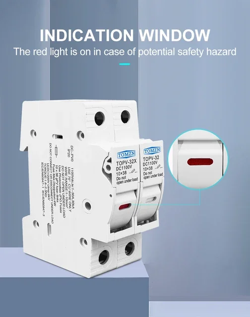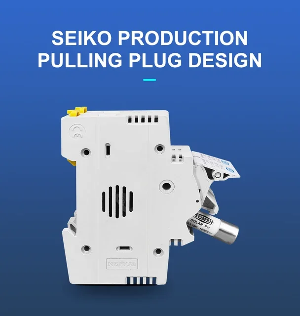 Este soporte es adecuado para fusibles fotovoltaicos con clasificación 3A, 6A, 10A, 15A, 16A, 20A, 25A, 30A y 32A.El voltaje máximo es 1000V.El portafusibles se puede combinar con lo siguienteque es una protección esencial para los paneles solares.