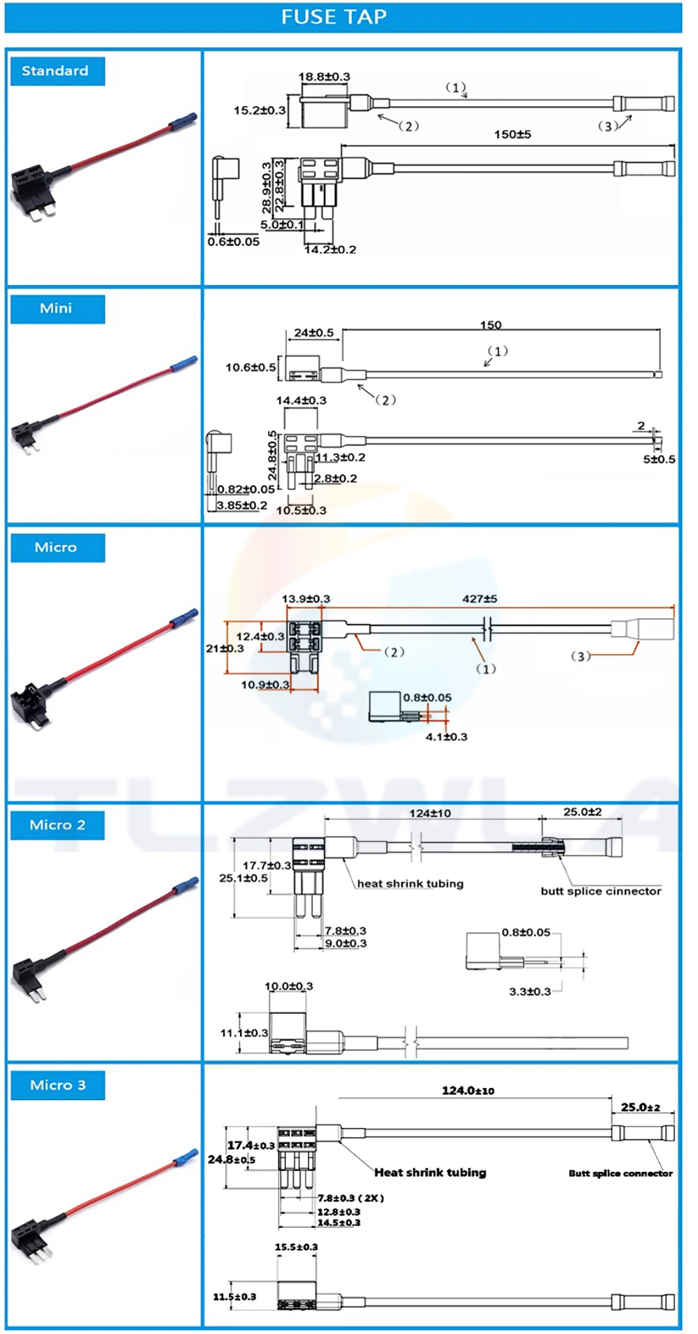 12V MINI PEQUEÑO Tamaño MEDIO Portafusibles de coche Add-a-circuit TAP Adaptador con 10A Micro Mini Standard ATM Blade Fuse