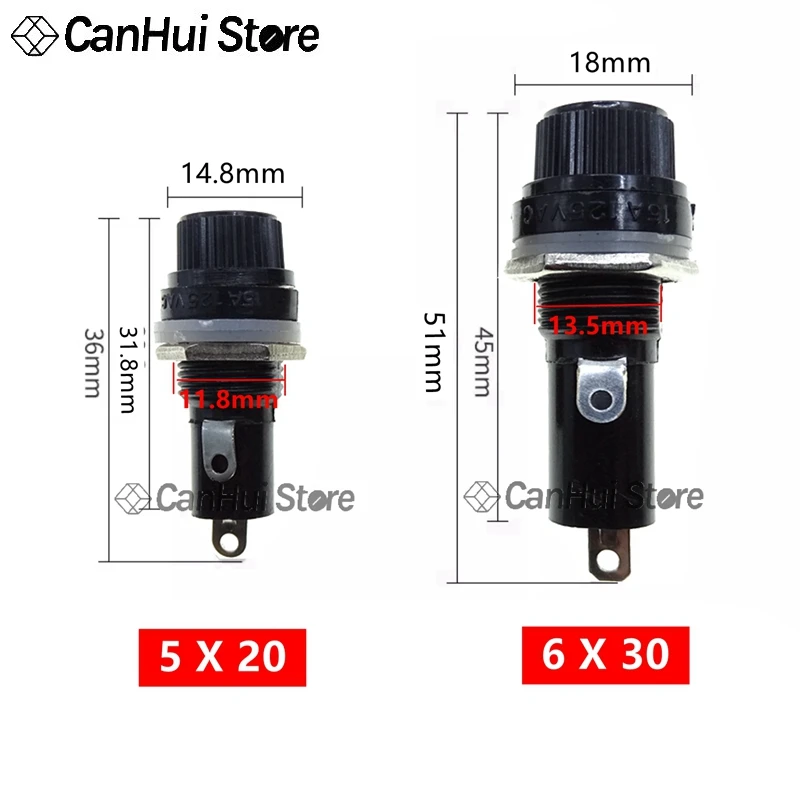 Puede haber una diferencia de 1-3mm debido a la medición manual.Debido a las diferentes pantallas y luces, es posible que la imagen no refleje el color real del artículo. Gracias por su comprensión.Características:Fácil de instalar, duradero y prácticoSe necesita algún conocimiento profesional para usar este producto.Estos portafusibles terminan con terminales de soldaduraSe adapta a equipos eléctricos, motocicletas, automóviles, camiones, SUV.Nota: Este artículo es adecuado para fusibles de tubo de vidrio de 5x20mm/6x30mm, pero el fusible no está incluidoEspecificaciones:Carga nominal: 15A/125VAC,10A/250V CAMaterial: plástico + metalColor principal: negro