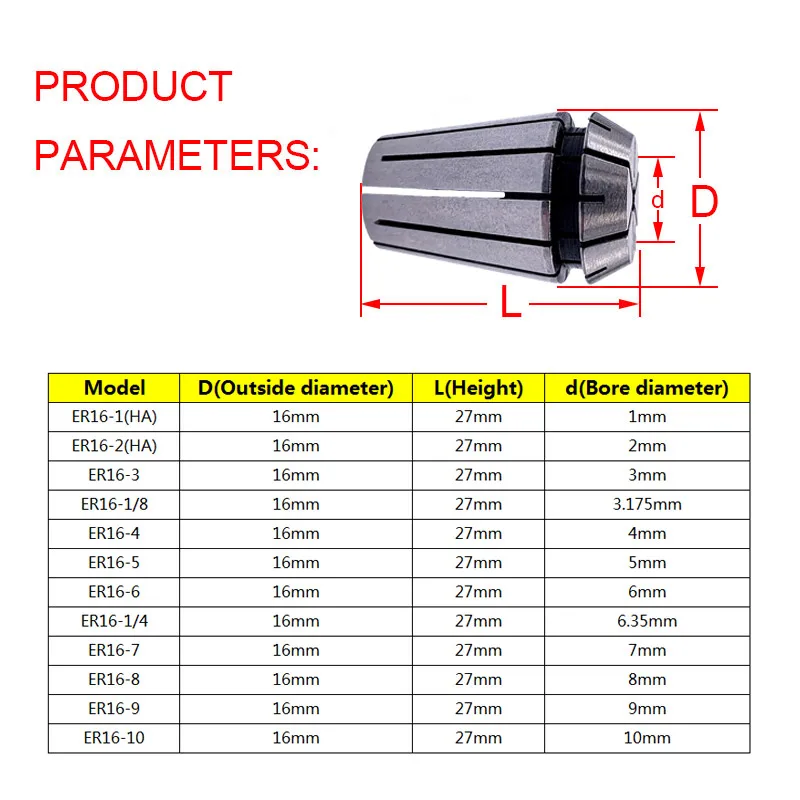 Comprar Portaherramientas de precisión para fresadora CNC, portaherramientas de grabado, ER16, 1/4, 1/8, 1/2/3/4/5/6/7/8/9/10mm, 1 piezas