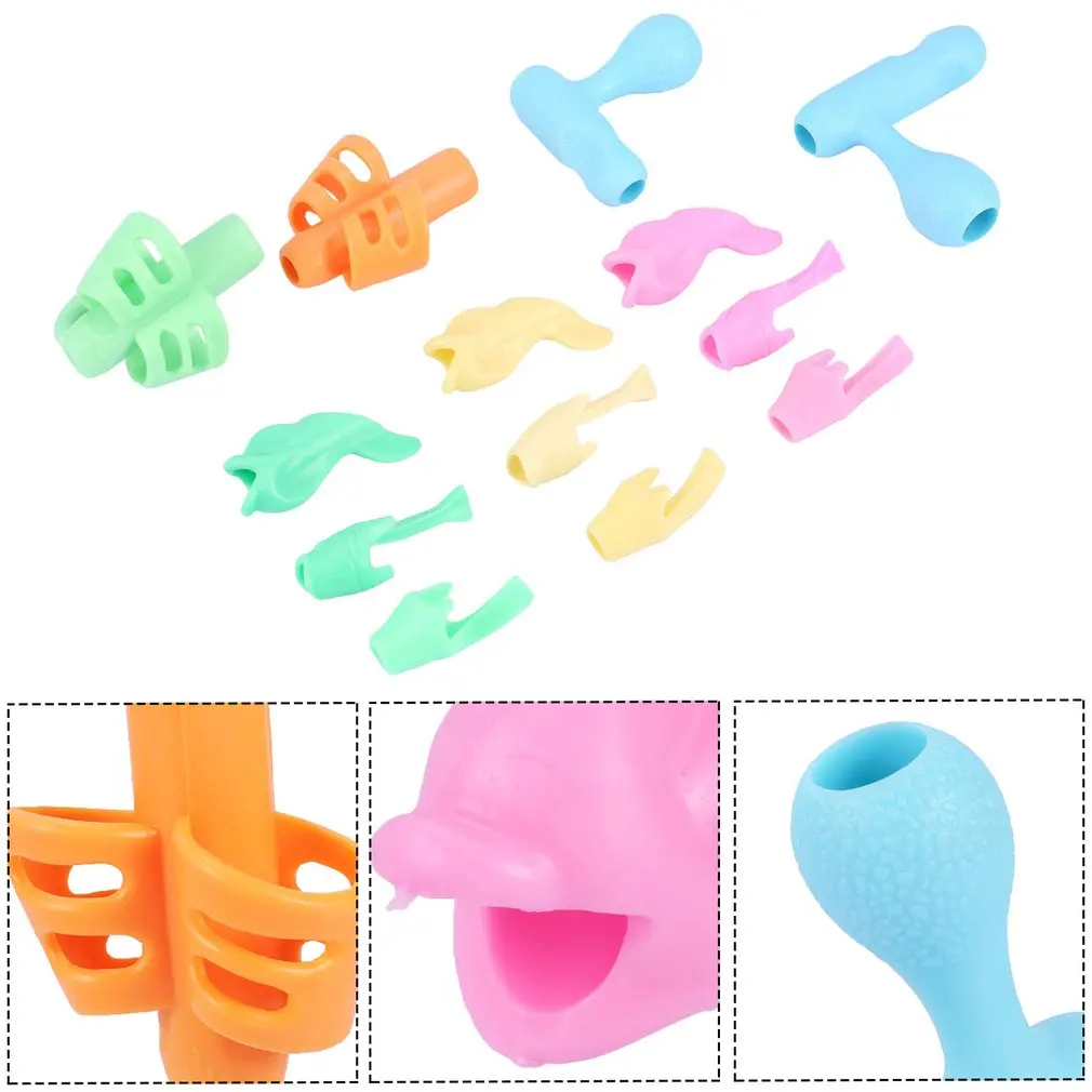 Comprar Portalápices de dos dedos para niños, herramienta de silicona para Aprendizaje de escritura, dispositivo de corrección, lápiz de agarre, Ayuda de escritura, 13 unids/lote